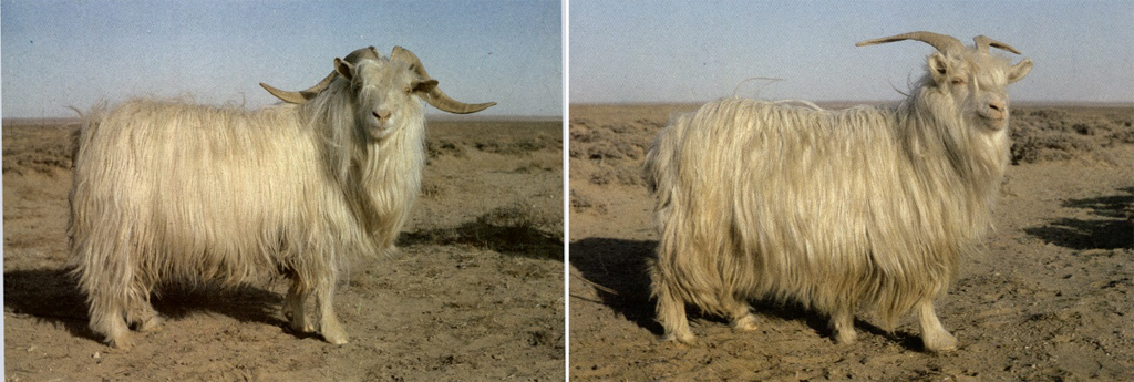 体质结实,公母均有角,公羊角粗大,母羊角细小,两角向上向后向外伸张,呈扁螺旋状,倒八字形。背腰平直,体躯深而长。四肢端正,蹄质结实。尾短而上翘。全身毛被白色,由上层的粗毛和下属的绒毛组成。 |