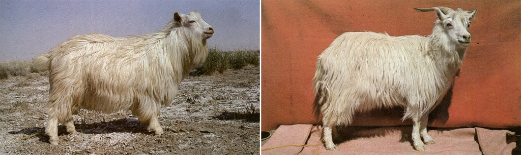 体质结实,紧凑。公、母羊均有弓形的扁角,分黑色和白色两种,公羊较粗大,向上并略向外伸展。四肢粗壮,前肢端正,后肢多呈“X”形。毛被以白色为主,也有黑色、青色,棕色和杂色等。毛被由粗毛和绒毛组成。 |