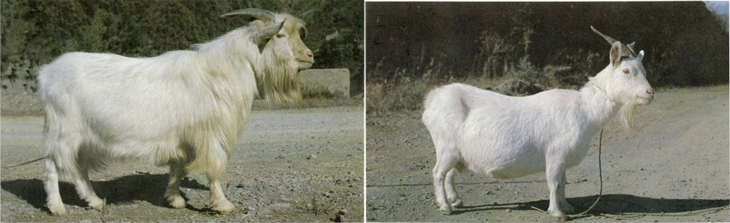 头大小适中,耳中等大,公母羊均有角,角扁向后方左右两侧开张。颌下有髯,颈细长,背腰平直,后躯丰满。十字部高。肢势端正,蹄质坚实,毛被白色。公羊被毛长,母羊毛被短,有的母羊脊背和四肢上端有少量长毛。 |