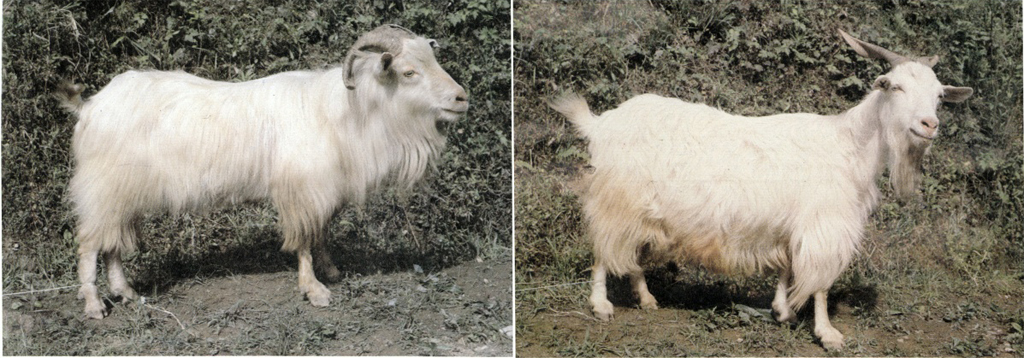鼻梁平直,额微凹,公母羊均有角,公羊角比母羊角大,角宽而略扁,向后弯曲扭转。公、母羊均有髯。体躯呈圆桶形,肋骨拱张良好,背腰平直,尻部略斜。四肢粗壮,骨骼坚实。毛被以白色为主,少数为黑色和杂色 |
