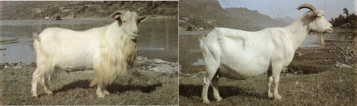 头宽额平,公母羊均有角。一种半圆角,向后上方伸展;一种扁平角,向后外伸展。颈部较圆,胸深,背宽平,体躯呈圆桶状,体长。四肢较矮。毛被以白色为主,其次为麻、黑、花色。毛被粗短。少数羊鼻、脸、耳部皮肤有灰褐色斑点 |