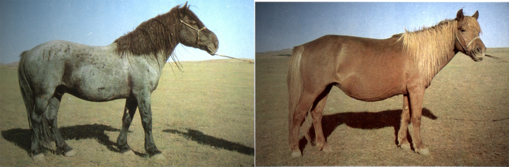体型中等,体质粗糙结实,外形上直头或半兔头,鼻孔大,眼大明亮。耳小挺立,颈略短,颈肩结合良好,鬐甲低而宽,前胸宽,胸较深,腹围较大。背腰平直,尻短而斜,肌肉丰满。四肢较短,低蹄,皮厚毛密,鬃、鬣、尾、距毛发达。毛色以青毛、骝毛、兔 |