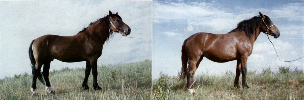 体质结实,较干燥,结构匀称,头大小适中,呈直头。颈长中等,颈肩结合良好,鬐甲明显,胸宽深,肋拱圆,背腰宽直。肩较长,倾斜良好,股胫丰满,关节轮廓明显,稍呈曲飞,蹄质坚实。毛色以栗毛、骝毛为主。 |