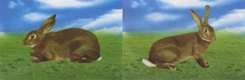 体型中等,结构匀称,背部毛色为红褐色,体侧渐浅,胸部呈浅黄色,选育和改良后已有黑白、天蓝、银灰等各种不同颜色。 |