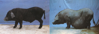 体型中等,头较小,脸略长,嘴稍长而直,口裂深,耳大而下垂,额上皱纹明显,鼻端有横纹,颈较长狭,胸不够宽深,背腰平直,腹大而垂,臀宽、稍倾斜,四肢健壮,被毛黑色。 |