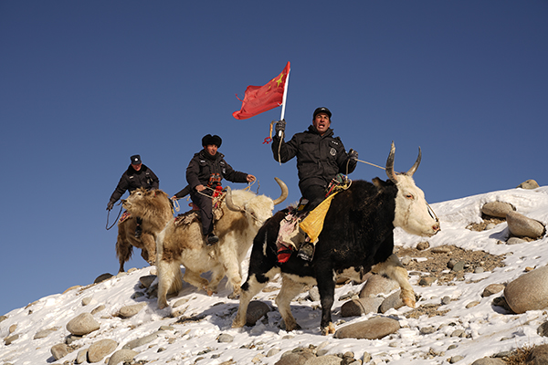 这里也是拉齐尼的“好兄弟、好战友”——粗壮结实、善爬陡峭山路的帕米尔牦牛的家乡。它们驮着护边员和边防官兵,在悬崖峭壁上探路,在厚厚的冰雪层上巡逻,用自己的身体为他们挡风雪、取暖,足迹踏遍了帕米尔高原边防线的每一块界碑、每一道山沟、每一条河流。