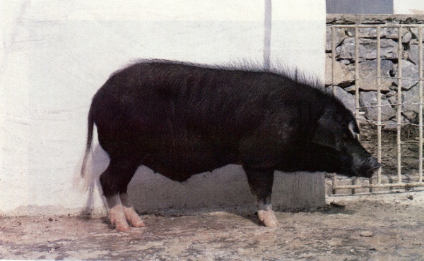 | 濒危依据及说明 | 体貌概述 | 体大、身长。头大小适中,嘴筒较大,微凹,口叉深,额有皱纹,横纹较深,突出如狮头状,颈略粗。胸较深而略窄,背腰平直,腹大不及地,臀稍斜。四肢强健有力,尾长过飞节,被毛粗,鬃毛3-5厘米,毛色有四种:一是“六白”猪,即额部有白色星状旋毛,四脚、尾端有白毛,其余全黑;二是全黑;三为棕色;四为花肚,以“六白”和“花肚”者居多。体大、身长。胸较深而略窄,背腰平直,腹大不及地,臀稍斜。四肢强健有力。 | |
