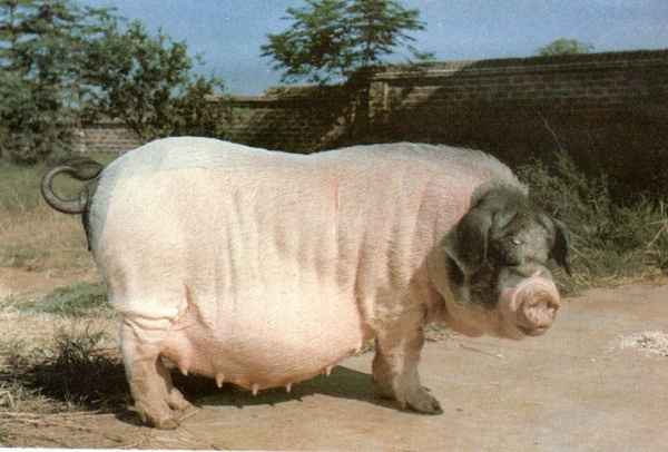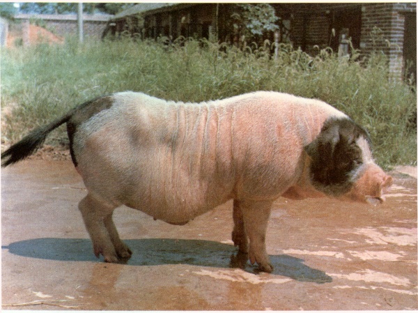 | 濒危依据及说明 | 体貌概述 | 头短宽,额部皱纹多呈菱形,皱纹粗深者称“狮子头”,头长直额纹细浅者称“万子头”或“油嘴筒”。耳中等大、下垂。背腰多稍凹,腹大,后腿欠丰满。四肢较结实。多卧系叉蹄。毛色:头、颈和臀、尾为黑色,躯干、四肢为白色。额上有一小撮白毛。 | |
