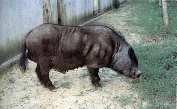 | 濒危依据及说明 | 体貌概述 | 本品种体型较大。耳大,下垂超过鼻端,嘴筒长直。背腰平直狭窄,臀部倾斜。四肢坚实有力。皮、毛黑色,皮厚,毛粗而密,冬季密生棕红色绒毛。 | |