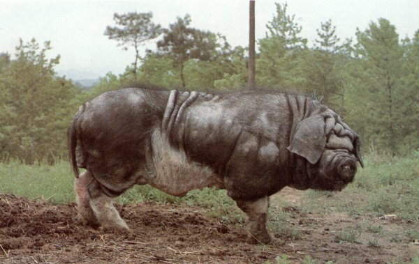 | 濒危依据及说明 | 体貌概述 | 头中等大。耳大而厚,垂向前下方,面微凹,额部皱纹多呈菱形。颈较细,胸较宽,背腰多平直,腹下垂。四肢粗壮,大腿不够丰满。尾尖扁平。体躯皮肤有皱褶。毛色大体可分为三种,全身黑色,仅肢端,尾尖,额部有白斑者称“六白”猪;仅四肢端为白色的称“乌猪白脚”或四蹄白猪;身躯有大块为白色的称“大斑花”。 | |
