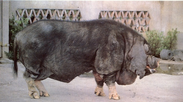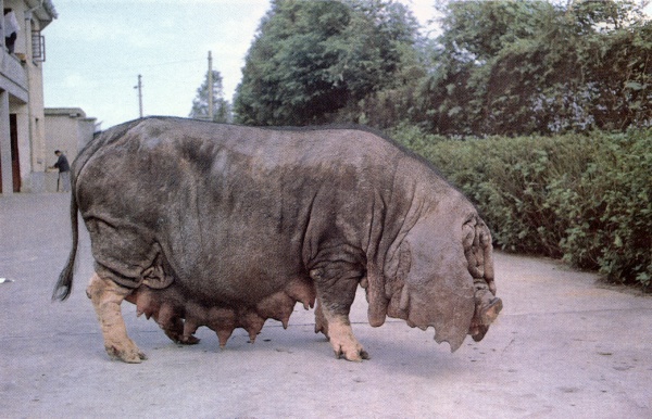| 濒危依据及说明 | 体貌概述 | 二花脸猪体型中等介于梅山猪与米猪二者之间。头大额宽、额部皱褶多、深。耳特大,软而下垂。耳尖齐或超过嘴角,形似大蒲扇。全身被毛黑色或青灰色,毛稀疏,毛丛密,毛丛间距离大,腹部皮肤多呈紫红色,也有鼻吻白色或尾尖白色的。 | |