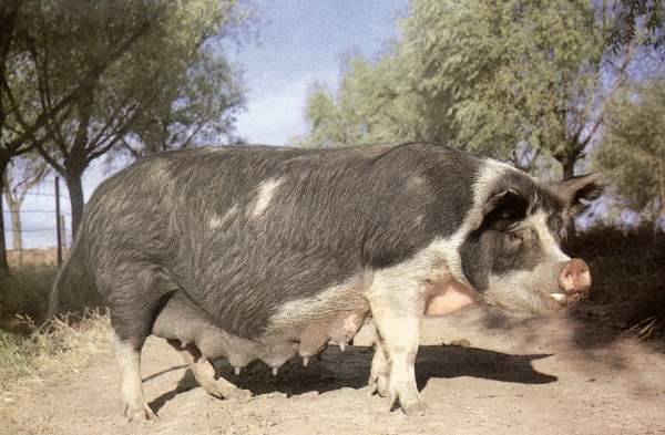 | 体型 | 体质结实紧凑,结构匀称。胸部宽深,背腰平直,身腰较长,腹大下垂,后躯丰满。四肢强健。 | 毛色 | 被毛黑白花。 |