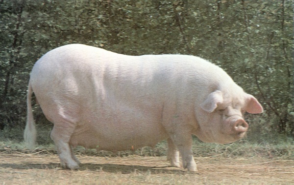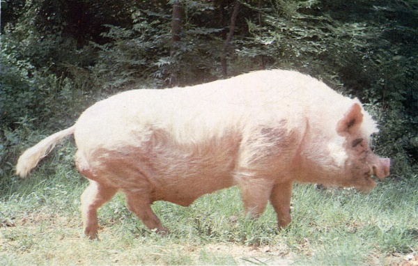| 濒危依据及说明 | 体貌概述 | 体型中等,额部有明显菱形皱纹。面微凹,嘴筒圆而稍短,母猪颈中等长而稍细。体躯较深,背腰宽而平,腹略垂而不拖地,后躯较丰满。四肢粗壮结实,蹄坚系短,尾长而粗。鬃稀疏。毛色全白,额部有小块黑斑。有“狮子头、双板腰、铜锣屁股、吊帚尾”之称。 | |