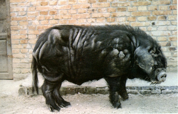 | 体型 | 大耳黑猪:马脸型猪体型大,身长,腿高。狮子头型猪,单脊背,腰微凹,腹大下垂,臀斜,四肢较粗,后肢卧系。小耳黑猪:单脊背,斜臀,腹大,四肢细小,直立,不卧系,后肢踏。 | 毛色 | 被毛黑色。 |