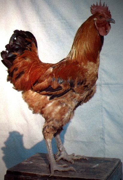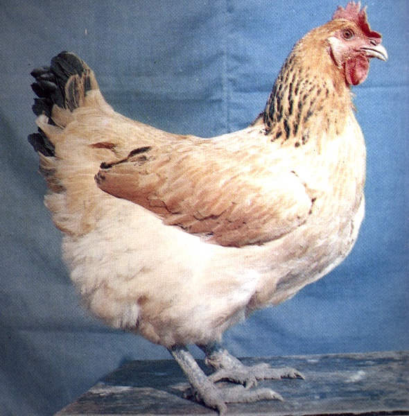 | 体貌概述 | 体型高大,体质结实,羽毛蓬松,体躯稍长、呈长方形。公鸡姿态雄伟,性勇猛好斗,头颈高昂,尾羽上翘,侧视呈“U”字型。母鸡体稍高,性温驯,活泼好动,背较长而平直,后躯深圆,近似方形。公鸡头部大小适中,母鸡头部清秀。单冠,冠齿为7--8个,公鸡冠直立,母鸡冠倒向一侧。耳叶、肉垂鲜红,较发达。眼大微凹陷,虹彩呈金黄色。颈稍长,胸廓发育良好。尾羽长出较迟。公鸡镰羽发达,向上展开。母鸡腹部丰满。腿高,胫长而粗。公鸡体羽呈金黄色和红色,主翼羽和尾羽呈黑色,梳羽金黄色或间有黑斑。母鸡羽色有黄色和麻色两个类型,黄羽型的背羽呈黄色,颈羽呈麻黄色;麻羽型体羽麻色。黄、麻两型的主翼羽和尾羽均呈黑色,腹羽均呈黄色。喙、胫呈青灰色,皮肤白色。 | 体型 | 体型高大,体质结实,体躯稍长,呈长方形。颈稍长,胸廓发育良好。腿高,胫长而粗。母鸡体稍高,背较长而平直,后躯深圆,近似方形。 |
