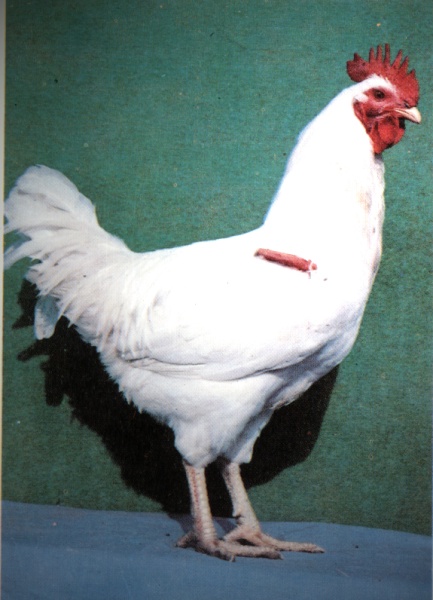 | 体貌概述 | 体态浑圆,胸宽而深,属兼用型体型。全身羽毛白色。喙、胫、趾黄色。公鸡单冠直立,耳叶红色带粉斑;镰羽发达。母鸡单冠中等大小,稍有“S”形弯曲。主尾羽发达,微向背部翘起。 | 体型 | 体态浑圆,胸宽而深。 |