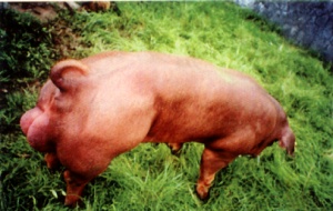 品种来源 简介 深圳市种猪场是农业部核发生产经营许可证的原种猪场。现存栏核心群纯种母猪450头(其中大约克夏母猪180头,长白母猪130头,杜洛克母猪150头),繁殖群纯种母猪l 350头(大约克夏母猪900头,长白母猪400头,杜洛克母猪100头),商品群长白和大约克夏杂交母猪6 200头。每年销售纯种及二元杂交母猪12 000多头(其中合格杜洛克公猪800头;长白公猪300头,母猪700多头;二元杂交母猪7 500多头),商品肉猪13万头。育种上采用闭锁与开放相结合的方法,在不断引进国外优良血缘的同时,更重视育种工作的开展,使用加拿大种猪现代育种软件对种猪进行评估,从法国引进世界上最先进的ACEMA-64种猪测定白动计数系统,成功培育了“深农猪配套系”[原往册商标为“南雁(NY)配会系”]。猪场率先采用早期隔离式断奶(SEW)设计,使用该公司自配饲料100、101、102等系列,成功攻克仔猪早期断奶和下痢关,仔猪全部实行18~21天断奶,体重达5.40千克以上,成活率为94.5%,21~60日龄成活率达98.5%,60日龄体重达19.5千克。种猪率先打开香港市场,并占香港种猪市场份额的40%,种猪销往广东、广西、云南、贵州、湖南、湖北、福建、河南、浙江等省。种猪以繁殖力高、抗病力强及适应性强受到用户一致好阵。1996年以技术与管理作为投资方式,与云南省畜牧局合办云南省原种猪场。