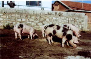 皮特兰猪体型小,四肢短而粗壮,后躯特别丰满;背腰平直,两耳直立;毛色相间,有的白毛多、黑毛少,个别也出现少量红毛。母猪温顺,体小灵活,护仔力强。初产母猪产仔数较少,每窝平均7.2头,但仔猪初生重较大,平均为1.48千克。生后60日龄仔猪要求的条件(如温度、营养等)高,如达不到要求条件,则仔猪发育缓慢。皮特兰仔猪初生至60日龄生长发育| 项目 | 初生 | 10 | 20 | 30 | 40 | 50 | 60 | | 头数 | 15 | 55 | 55 | 55 | 53 | 52 | 52 | | 平均体重(千克) | 1.53 | 3.03 | 4.78 | 6.43 | 8.46 | 10.78 | 13.66 | | 日增重(克) | | 150 | 175 | 165 | 179 | 215 | 288 | | 平均每头耗料(克) | | 14 | 56 | 69 | 125 | 226 | 413 | 皮特兰仔猪35日龄断奶,35~70日龄在保育舍高床饲养,10~60日龄采用哈尔滨人生饲料厂生产的301乳猪颗粒料喂养。从表中可看出,皮特兰60日龄平均体重为13.66千克,体重偏低,究其原因,与仔猪开食过晚、采食量太少有关,加之每10天逐头抓猪称重,对其增重也有很人影响。对皮特兰后备猪与成年猪进行体重体尺测定表明,皮特兰品种比其他引进种猪(如大约丸克猪、长白猪、杜洛克猪等)体重轻,体型矮小,但四肢健壮,公猪性欲旺盛。皮特兰猪体重体长测定| 群别 | 性别 | 体重(千克) | 体长(厘米) | 体高(厘米) | 胸围(厘米) | | 4月龄中猪 | 公 | 55.5 | 86 | 48.0 | 82.0 | | 母 | 44.8 | 81.0 | 43.0 | 77.0 | | 成年猪 | 公 | 179 | 132 | 78.0 | 131.0 | | 母 | 158 | 129 | 69 | 123 | 皮特兰猪主要屠宰数据| 项目 | 数值 | 项目 | 数值 | 项目 | 数值 | | 宰前活重(千克) | 157 | 后腿重(千克) | 37.8 | 骨重(千克) | 10 | | 空体重(千克) | 149.5 | 平均膘厚(厘米) | 1.035 | 眼肌高(厘米) | 7 | | 胴体重(千克) | 121.85 | 瘦肉重(千克) | 92.4 | 眼肌宽(厘米) | 13 | | 胴体长(厘米) | 84 | 脂肪重(千克) | 8.2 | 皮重(千克) | 8.1 | |