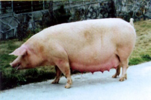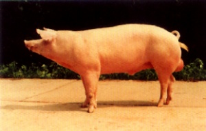 头颈轻,两耳前倾,前躯发育良好,胸宽而深。中躯伸长,背腰平直或微弓,肋骨开张,腹线平直,肷部充实。后躯发达丰满。毛色全白,乳头7~8对。 据杭州市种猪试验场的育种资料,后备猪6月龄平均体重从一世代的83.38千克增加到十世代的106.67千克,平均日增重从510.7克提高到678.5克。经浙江省种猪质量检测中心近年来的测定,达100千克体重日龄平均为145.6天,校正日增重907克,饲料利用效率2.73:1,校正背膘厚12.6毫米,平均体长121.2厘米,体高66厘米,胸围102.8厘米,腿臀围85.8厘米。 长白小公猪要到6月龄左右方有成熟精子并使母猪正常受孕。小母猪出现初情在5.5~6月龄,母猪的初配为240~260日龄,体重120~130千克。 长白猪是一个高泌乳性能的猪种,据杭州市种猪试验场测定资料表明:60天泌乳期平均泌乳618.88千克,日均10.31千克,高峰日14.87千克。 长白猪是一个生长快、饲料转化率高、屠宰半高、瘦肉率高的猪种,根据杭州市种猪试验场1999年屠宰表明:肥育猪达100千克日龄龄为163.9±13.1天,日增重832.2±96.9克,饲料利用效率(2.77±0.295:1),屠宰率75.31%±2.25%,胴体瘦肉率65.06%±2.38%,平均背膘厚17.53±0.34厘米。长白猪除肌内脂肪含量偏低外,其他肉质性状均良好。 长白猪所具有的优良品质特性与几乎所有的猪种有良好的配合力,因而在杂交利用方面非常广泛。 繁殖性状在二元杂交中表现出一定的杂交优势,生长度和胴休瘦肉率更优于和地方猪种的杂交。从中筛选出杜长北(北京黑猪)、大长北、大长苏(苏太猪)、长大苏、杜长福(福州黑猪)等优秀组合,成为计多规模猪场的生产模式。 杜大长和杜长大就成了引入品种之间的主要杂交模式,经济发达区域的大城市和港澳地区对瘦肉率要求高,针对这个层次的市场均采取这种生产模式。以长白猪为育种素材培育新品种(品系)的计划为最多,仅1990年前通过的16个白色品种中就有9个品种利用过长白猪,有的占有的血液比例还很大。其中对养猪生产影响较大的有三江白猪、湖北白猪、浙江中白猪、广西白猪、新疆白猪、内蒙古白猪、甘肃白猪和湘白猪。 |
