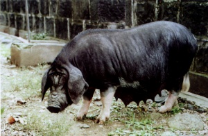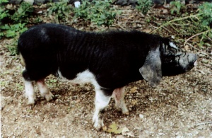 嵊县花猪体质健壮,全身被毛除四肢末端、尾尖、额部六处有白色毛外,其余均为黑色,故又称“六白猪”。嵊县花猪背腰大多平直,臀部稍倾斜,大腿不够丰满,腹饱满面下垂,四肢粗壮结实。乳头平均16.3个,8对以上乳头猪占85%。 嵊县花猪初生重一般为0.75千克左右,6月龄母猪体重49.01千克,公猪体重41.7l千克,成年母猪体重90~125千克,成年公猪体重100~150千克,在我国地方品种中属中等体型。 嵊县花猪性成熟早,小公猪一般在5月龄、体重30~35千克开始利用,母猪大多在4月龄、体重30~40千克,第3~4次发情后初配,母猪利用年限7~8年,可利用胎次12~15胎,利用20多胎的为数也不少。发情征状明显,配种受胎率高,护仔性强。 嵊县花猪18~75千克肥育期日增重417克,每千克增重消耗消化能51.04兆焦,75千克体重屠宰,屠宰率70.01%,胴体瘦肉率43.20%,脂肪率30.61%。嵊县花猪肉质优良,肉色鲜红,肌间脂肪分布良好,比较适合我国城乡居民对肉品色、香、味的要求。 以嵊县花猪为母本,分别与大约克夏、长白公猪杂交,所得杂种猪的肥育期(20~90千克),日增重分别为548克和576儿,每千克增重耗消化能50.84兆焦、47.45兆焦。嵊县花猪有产仔数高、性成熟早、母性好、杂交配合力强,以及耐粗饲、适应性强、肉质鲜美等特点。与其他品种猪进行二品种和三品种杂交,所产生的杂种后代在繁殖和肥育等性能上均表现出良好的效果。发展这种杂交猪生产既符合市场需求,又适应本地生态,且充分利用了本地资源。 因此,对嵊县花猪进行保护和资源开发利用是切实可行的。 |