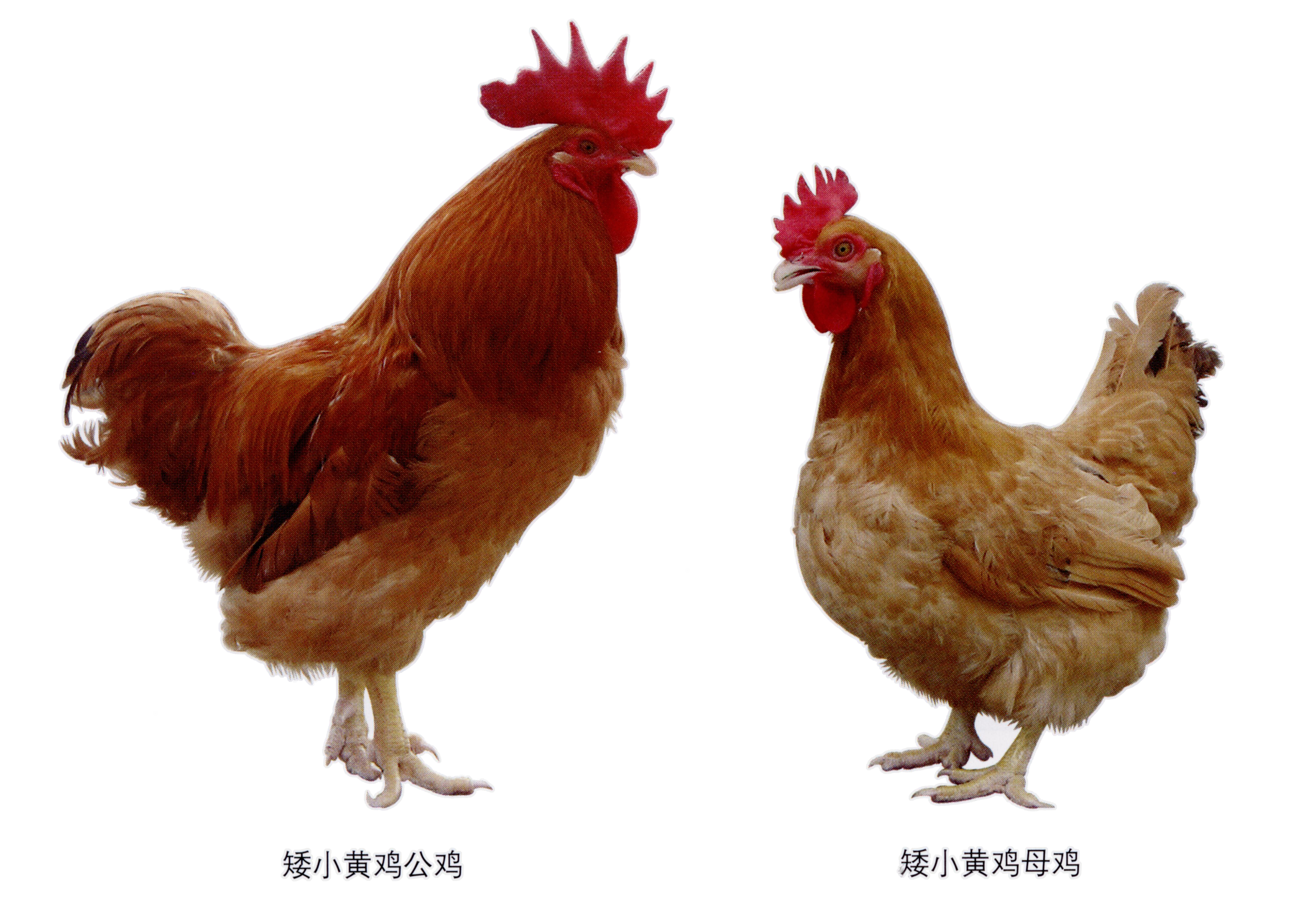 | 品种优缺点 | 因伴性隐形矮小基因(dw)作用,矮小黄鸡与普通鸡相比,公鸡成年体重低30%~40%,母鸡成年体重低20%~30%,可节约饲料20%~30%。矮小黄鸡用作肉鸡配套系的第一父本,可使父母代母鸡变得矮小,再用普通型鸡做终端父本生产正常型商品代鸡。 | 研究开发及利用方向 | 因引进的矮小黄鸡品系羽色不太适应国内优质肉鸡配套需求,故直接应用较少,多将其矮小基因(dw)导人地方鸡品种,培育优质肉鸡专门化品系进行配套利用。 |