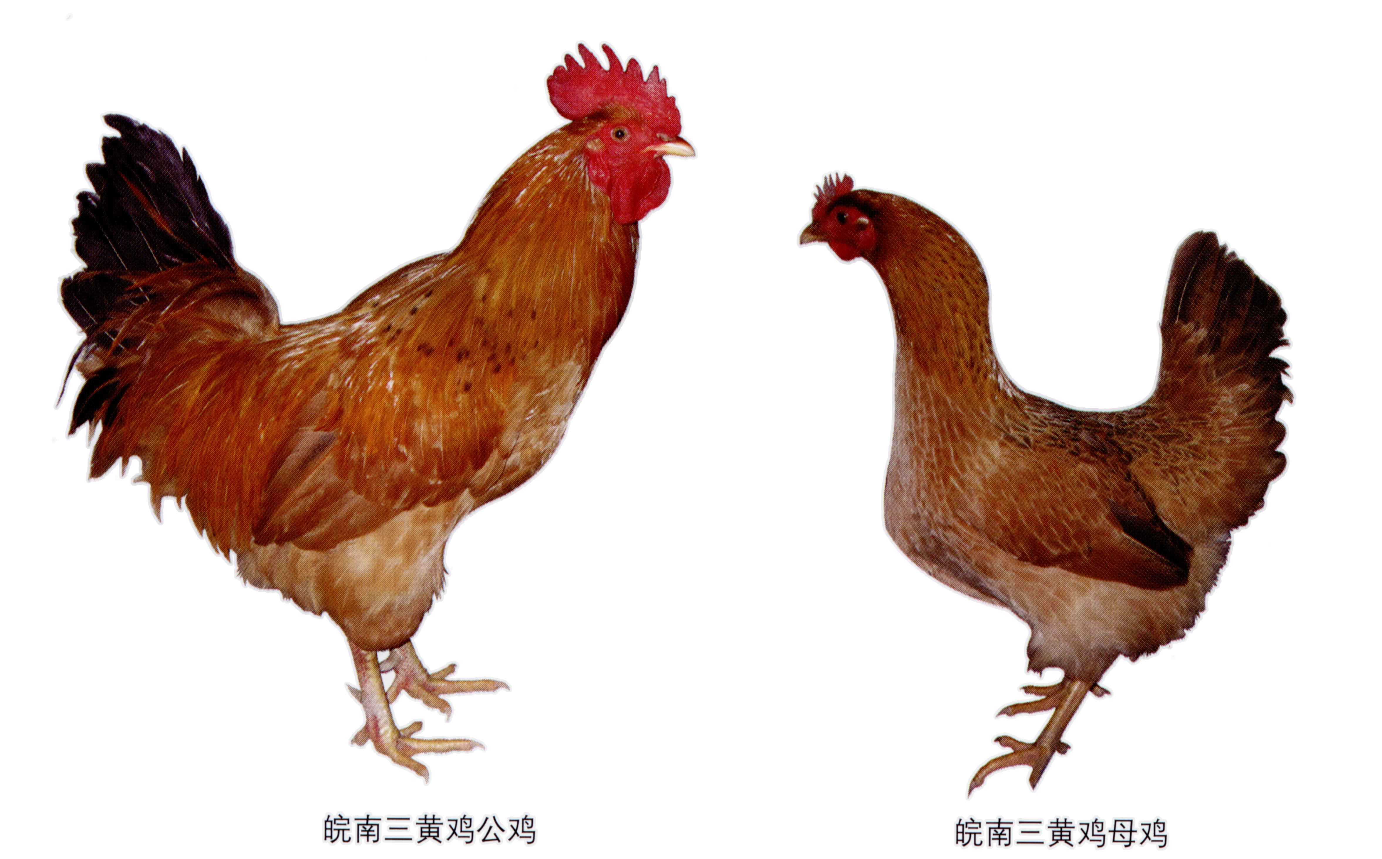 | 主产区及分布 | 中心产区为安徽省宣城市和池州市,主要分布于宣城市宣州区和池州市贵池区及青阳县等长江以南的丘陵地区,周边江苏、山东、河北等省也有分布 | 形成历史 | 皖南三黄鸡是安徽省劳动人民经长期饲养和选育形成的一个兼用型地方品种,囚其肉质细嫩、味道鲜美、香味独特而深受当地群众喜爱 |