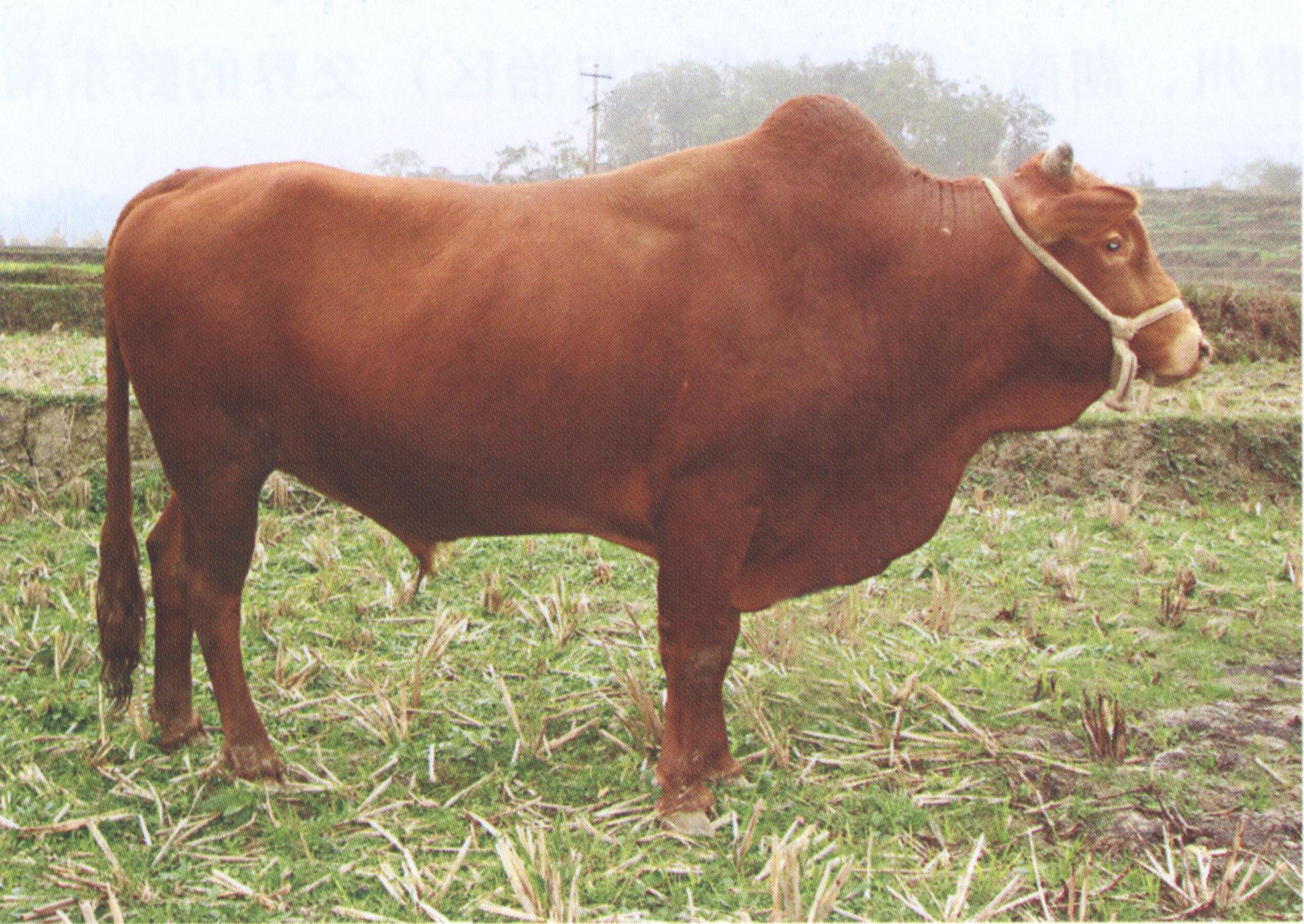 | 体貌特征 | 被毛多为黑色和黄色,褐色次之,亦有少量黑白花和黄白花。头中等大小,公牛略显宽短;额宽平,嘴圆大、口角深。母牛角短细,向前两侧弯曲,多为黑褐色;公牛角粗大,多为“竹笋角”。母牛颈长薄;公牛颈短,垂肉发达,肩峰高大突出。胸宽深,背腰平直;母牛后躯略高于前躯。腹圆大而充实,尻部较宽而丰满,略有倾斜。四肢短小结实,蹄质坚实。成年公牛体高为107.6厘米,母牛为98 .9厘米,公牛体重为288 .1千克,母牛为196 .2千克。在农村粗放饲养管理条件下,初生重较小,公犊为11.8千克,母犊为11.5千克。公牛1~1.5岁开始配种,母牛2岁开始配种。母牛繁殖年限可达15~20年。屠宰率为50.1~53.6%,净肉率为48.5%。 | 其它特征 | |