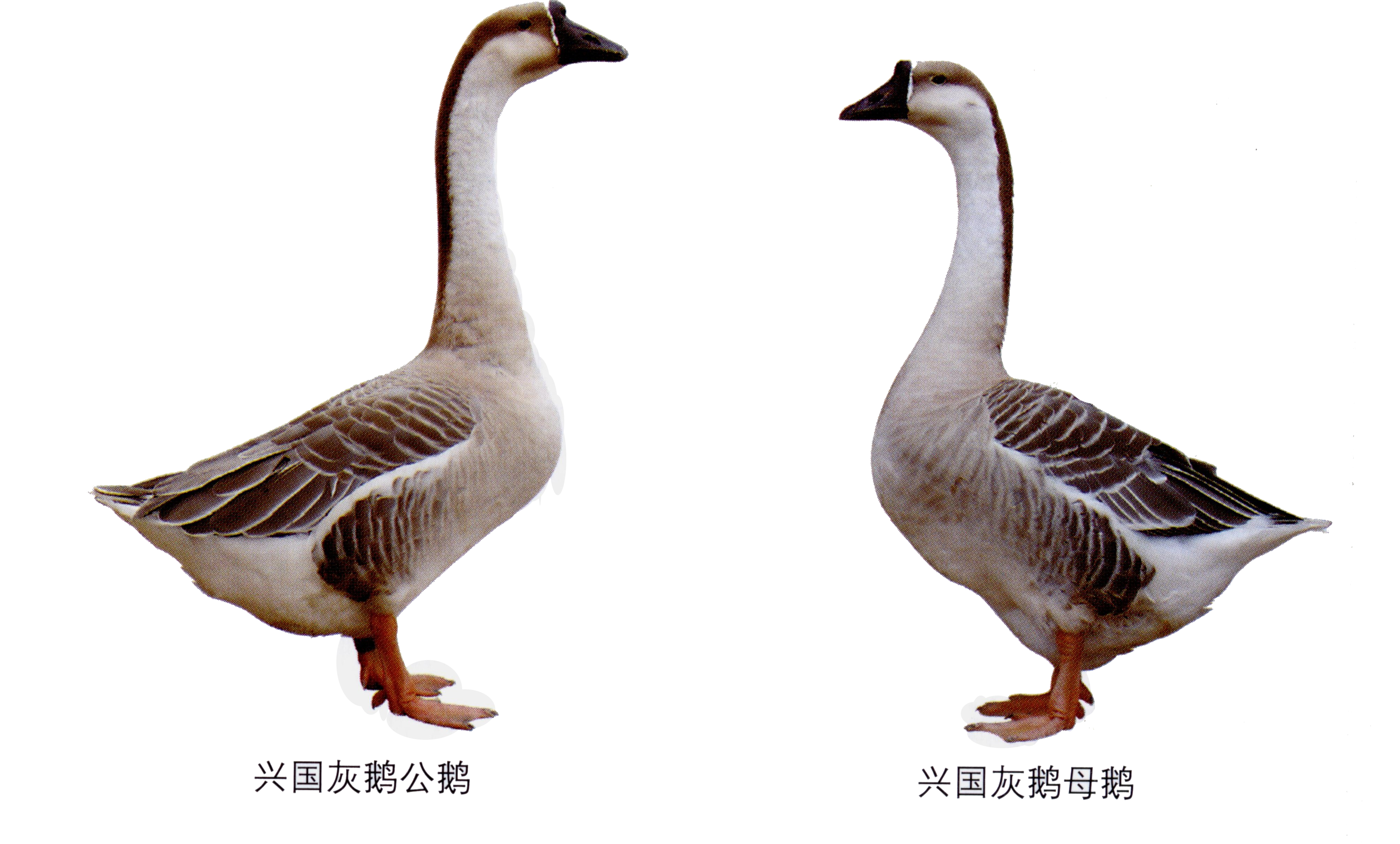 | 颈部特征 | 体型特征 | 兴国灰鹅体型匀称,全身羽毛紧凑。公鹅腹部饱满、不下垂。母鹅肉瘤较小,有明显腹褶。 | |