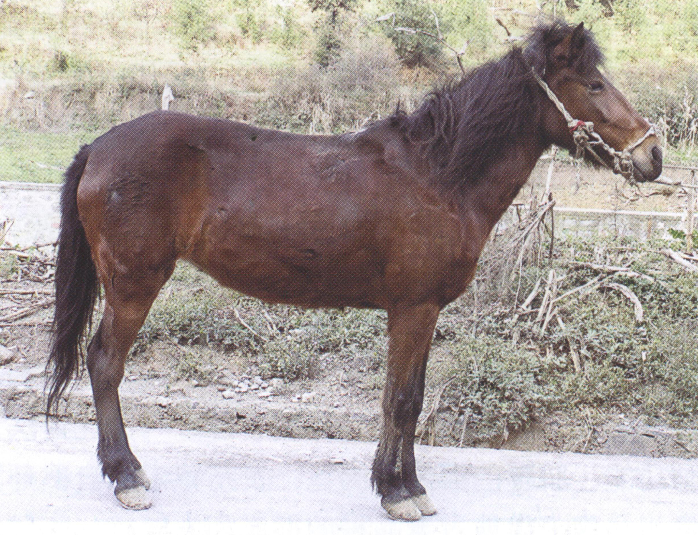 | 种质优缺点 | 贵州马是我国优秀的山地小型品种,具有典型山地马的优良特性。体质结实,短小精悍,行动敏捷,耐粗耐劳,持久力强,适应性强,善于山区作业,驮挽兼用,是边远山区交通运输和农业生产的辅助动力。 | 研究及开发利用 | 尚未建立保护区和保种场,未进行系统选育。目前,在一些交通不发达的山区,贵州马仍为主要的驮载运输工具和农业生产的重要役力。近几年,在贵州西南地区亦将贵州马作为观赏娱乐骑乘马用。 今后应以本品种选育为主,保持其固有的优良性能。贵州马中的矮马类群可有计划地培育 |