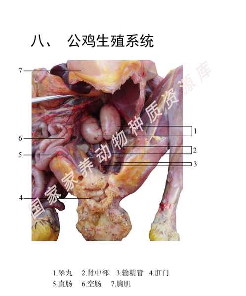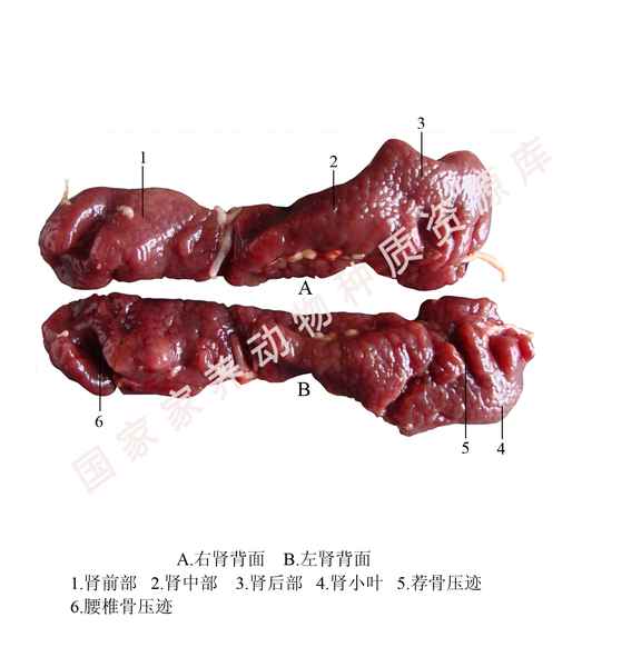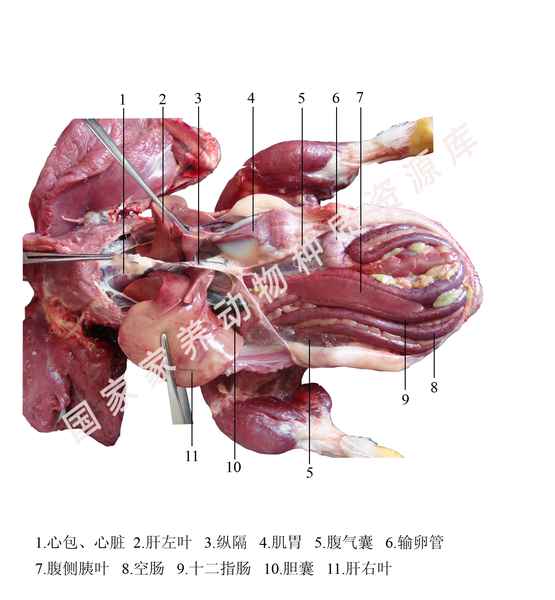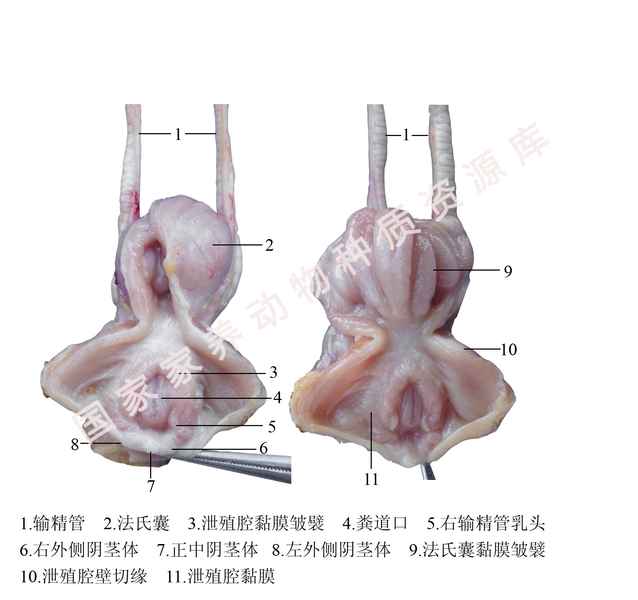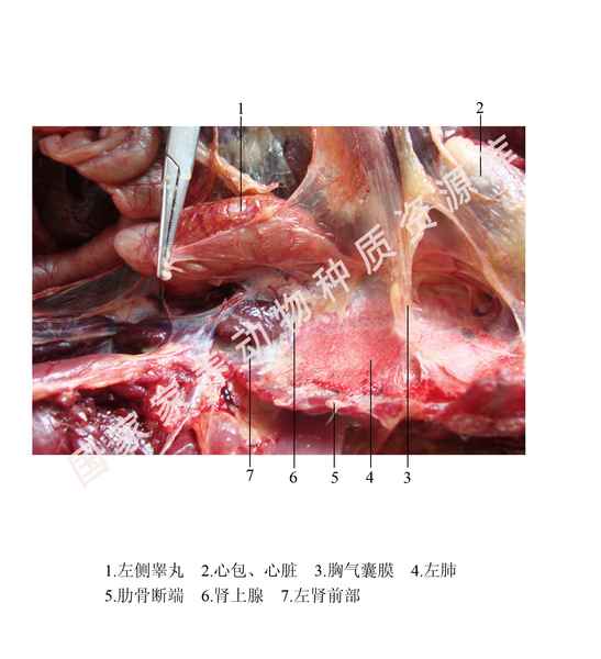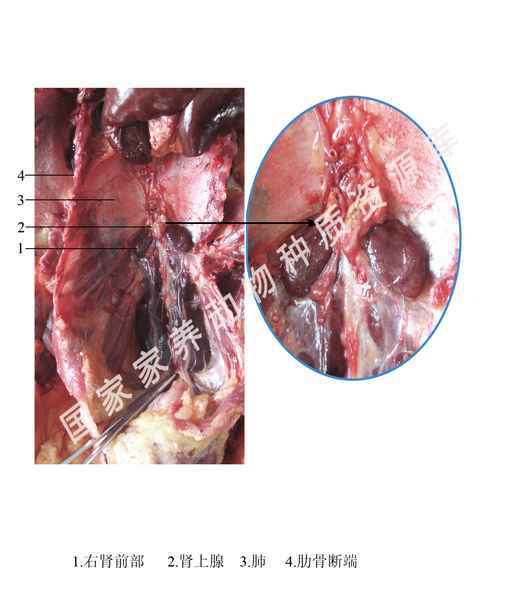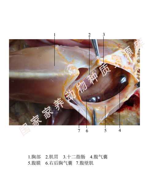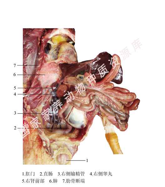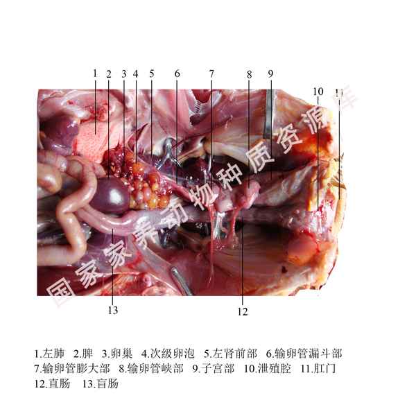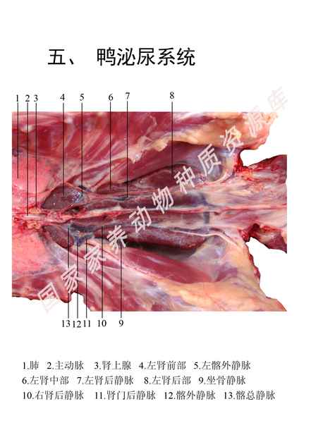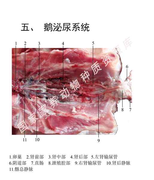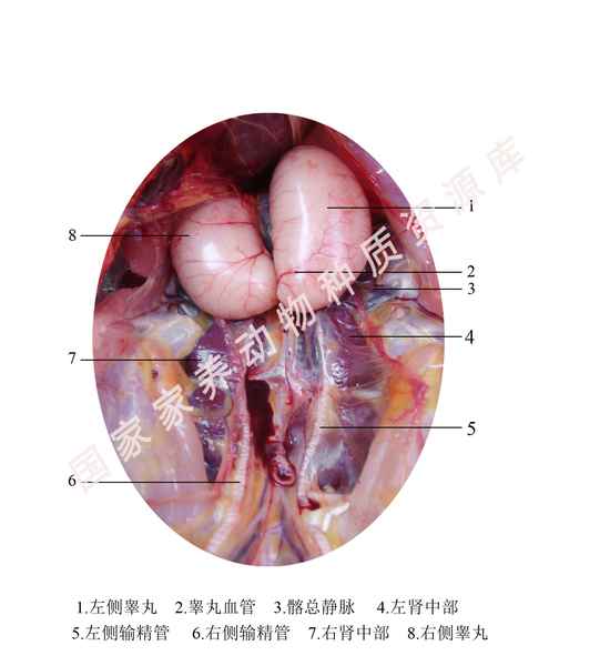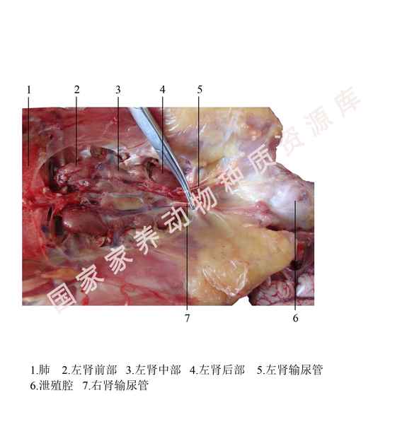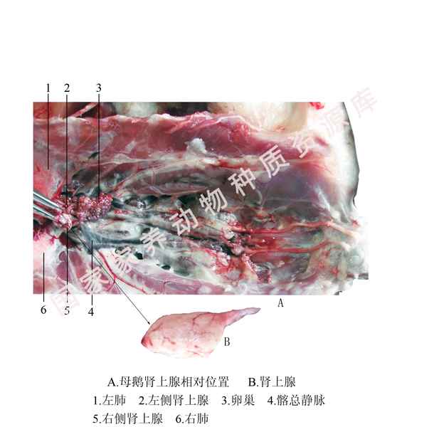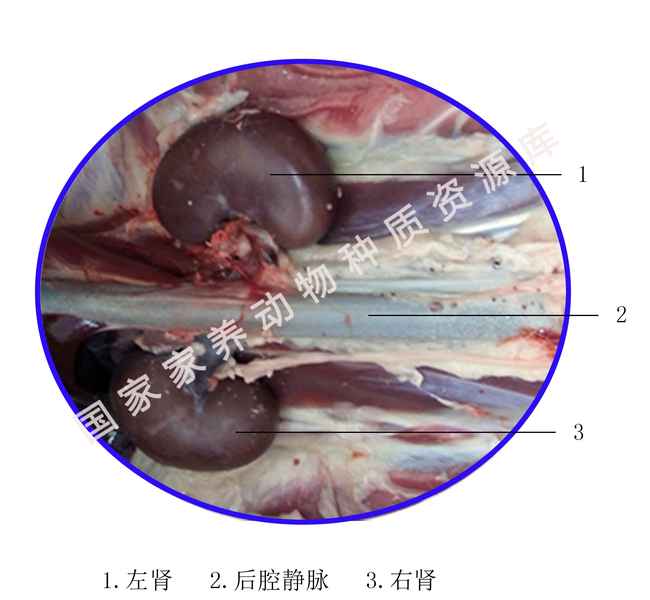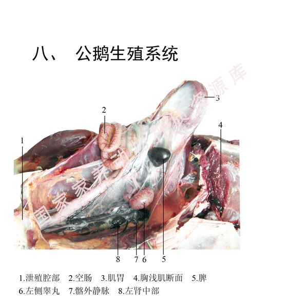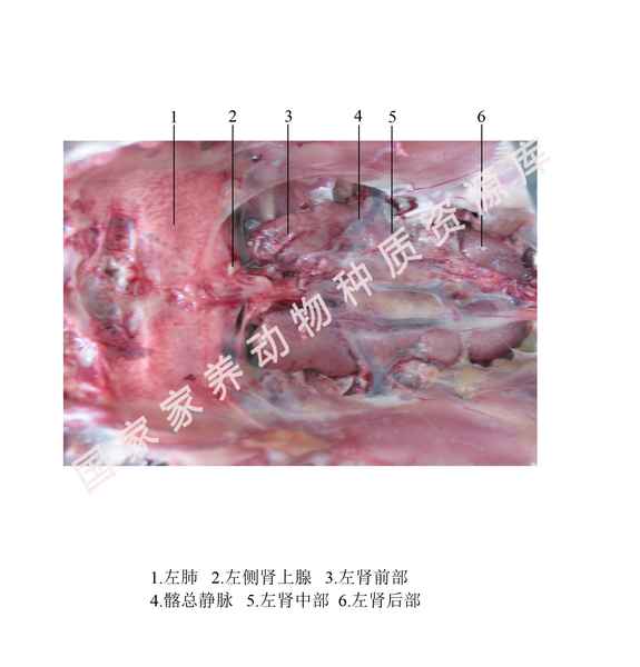 1.公鹅睾丸在腹腔内的位置(育成鹅)