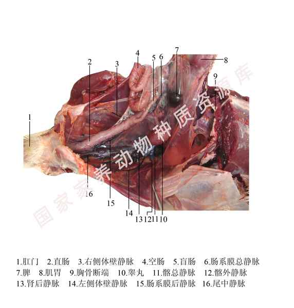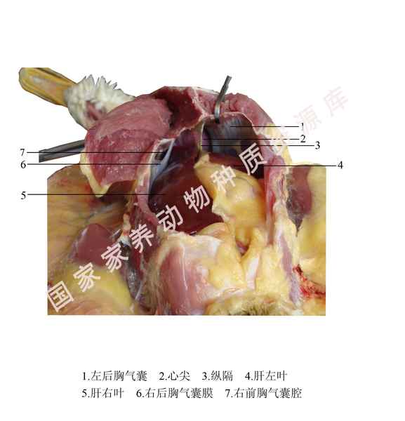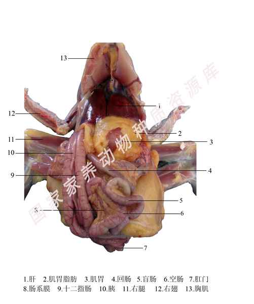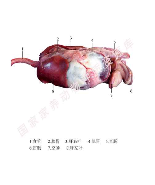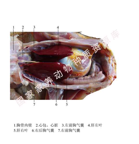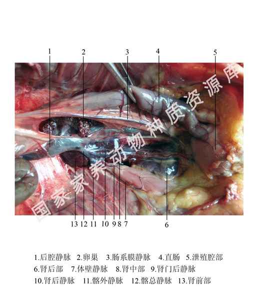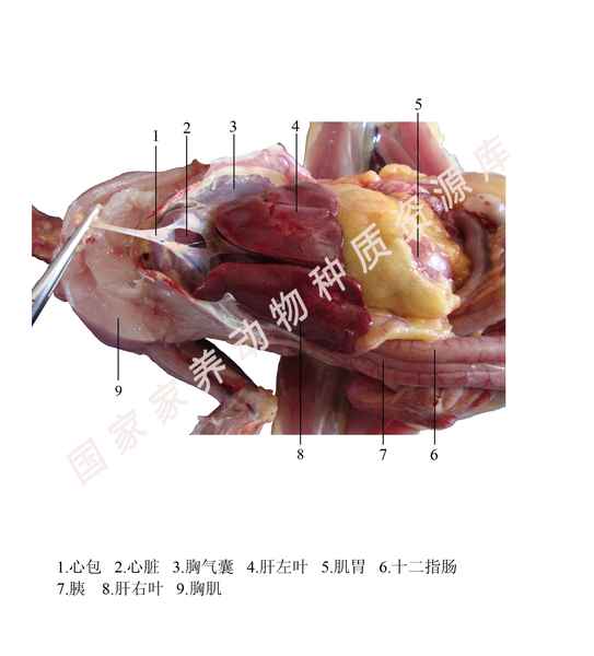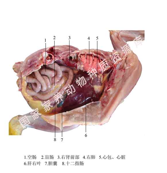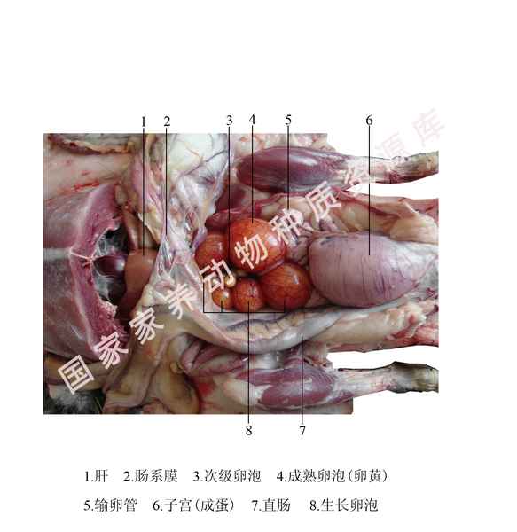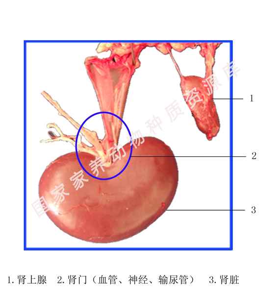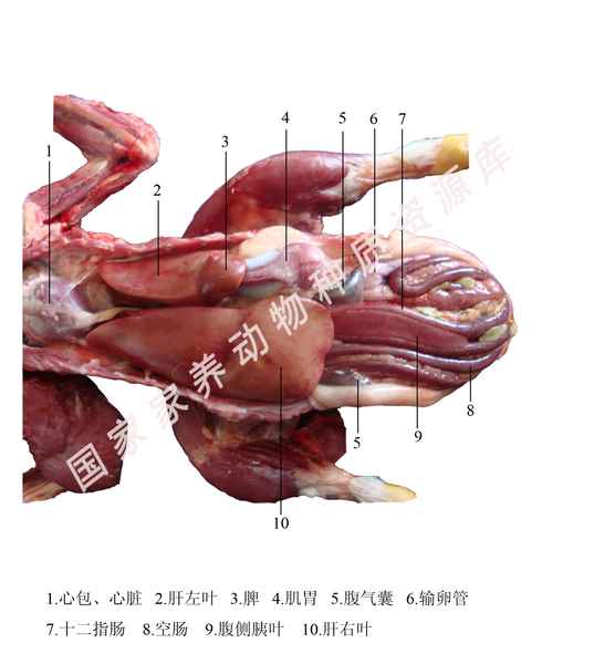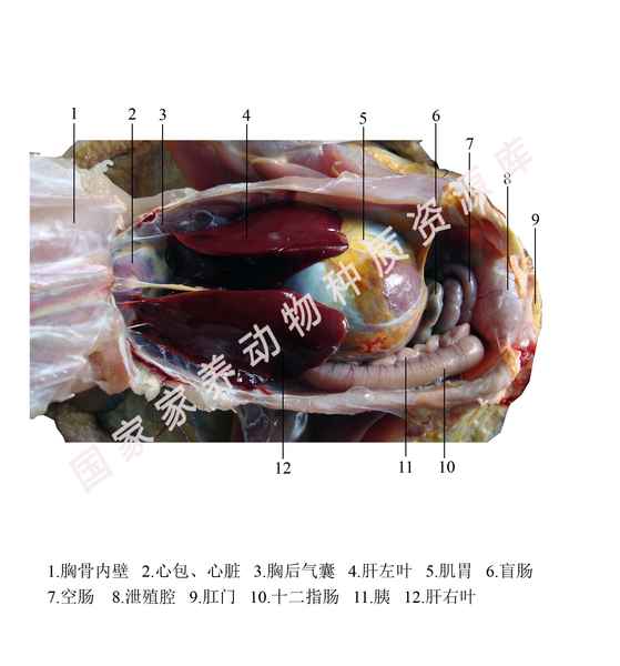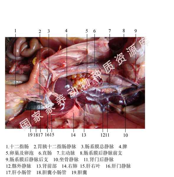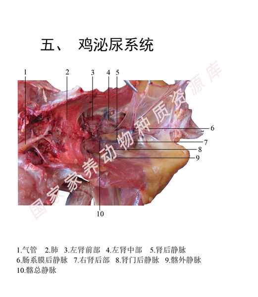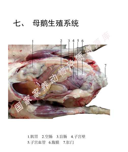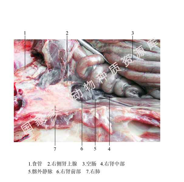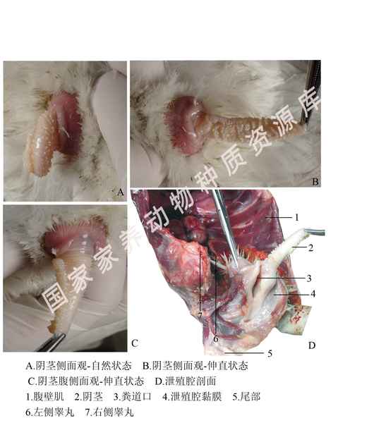 1.公鹅睾丸在腹腔内的位置(育成鹅)