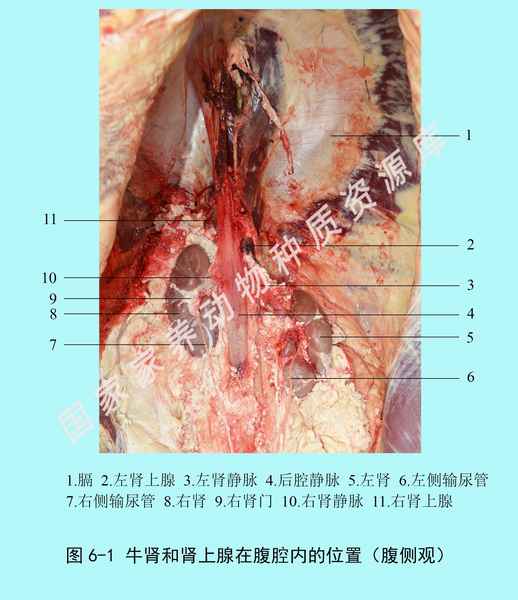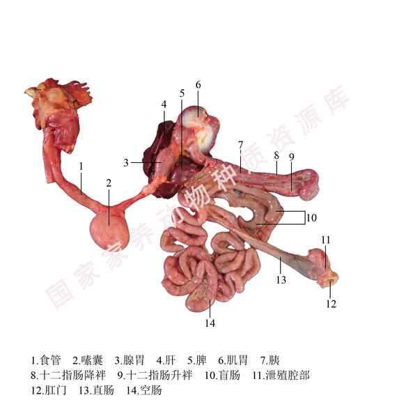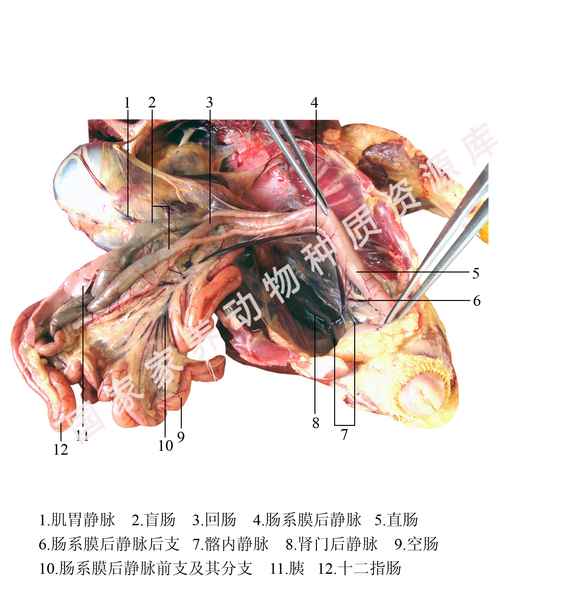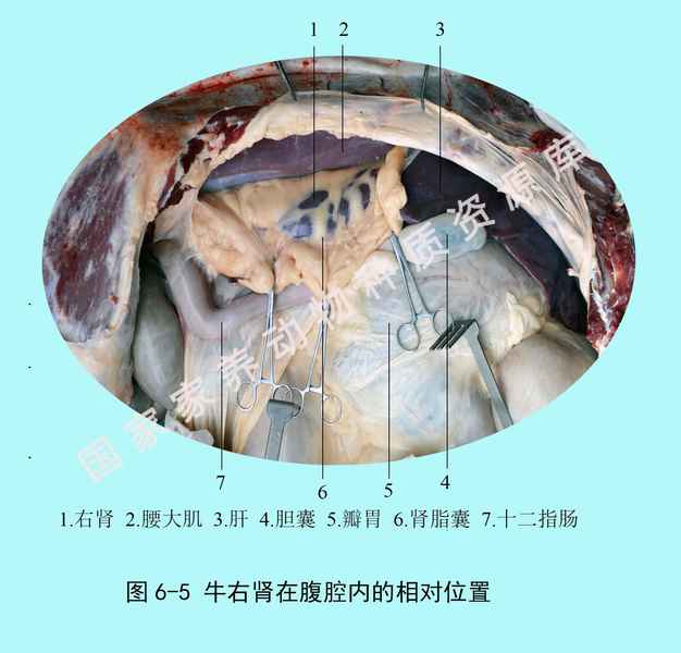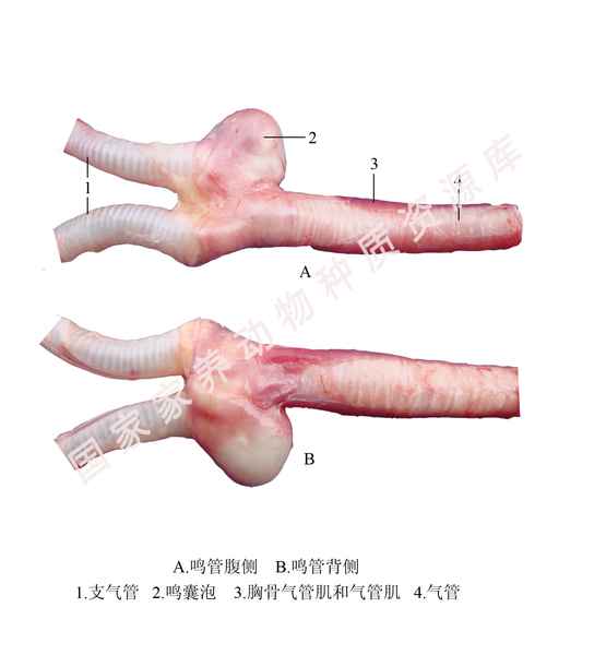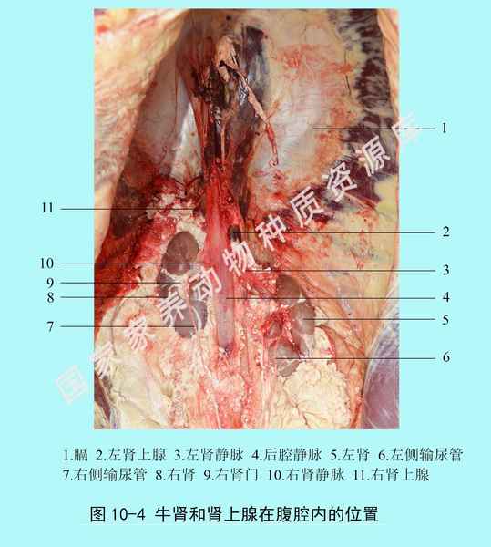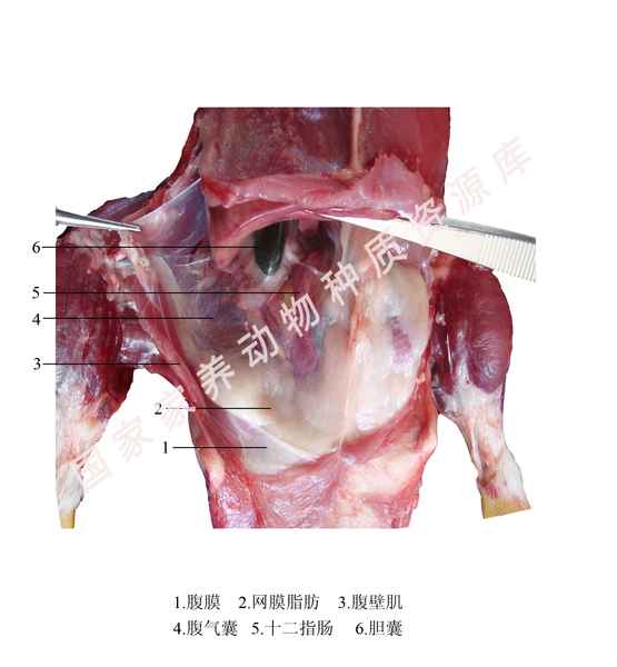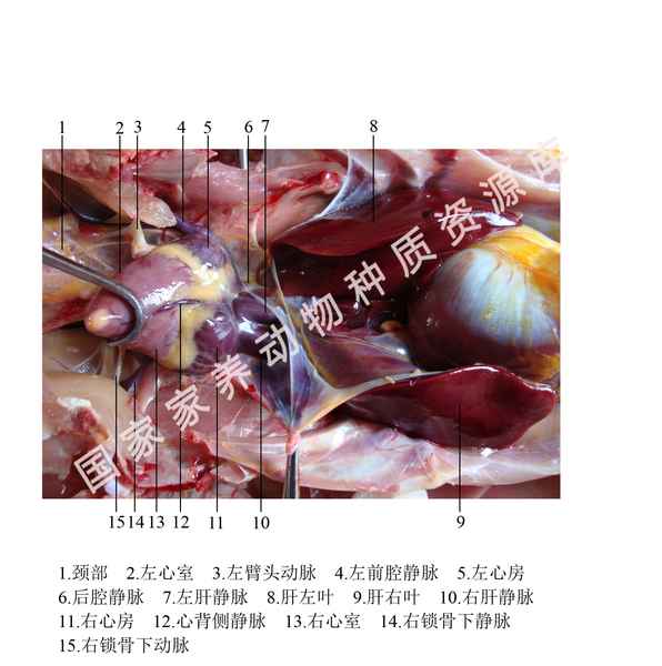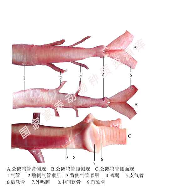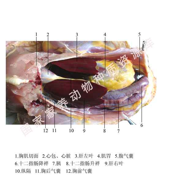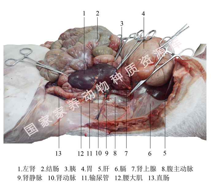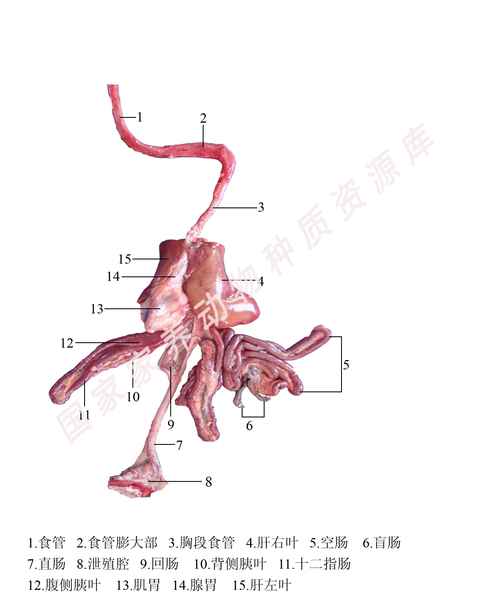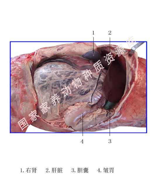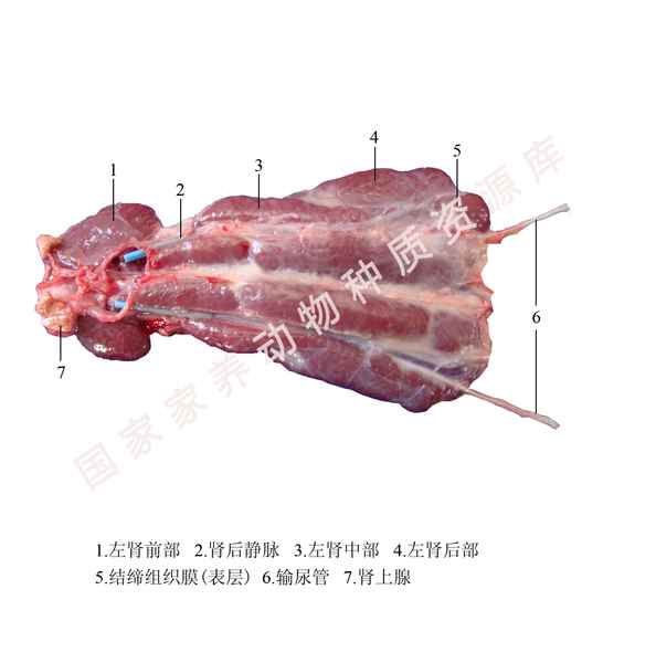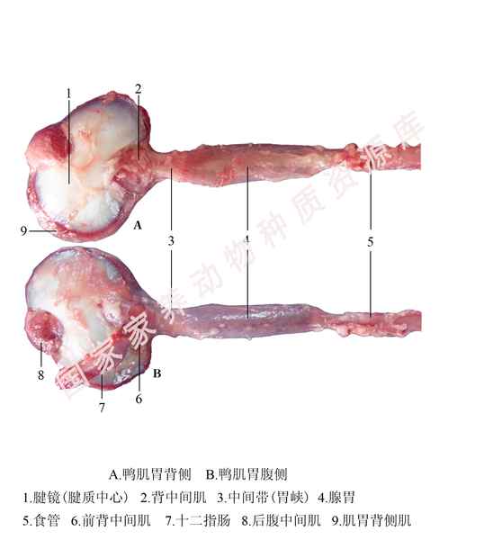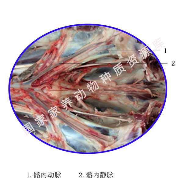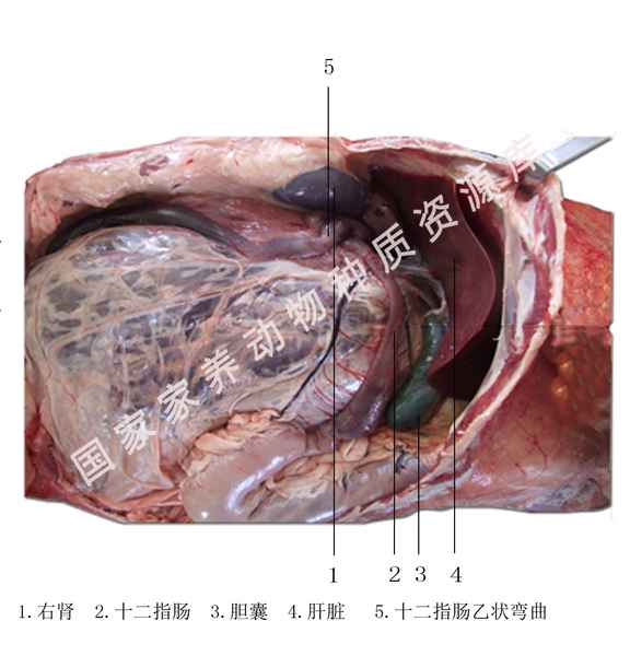 1.公鹅睾丸在腹腔内的位置(育成鹅)
