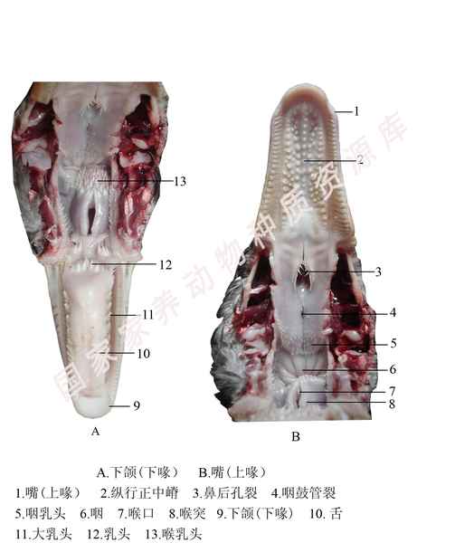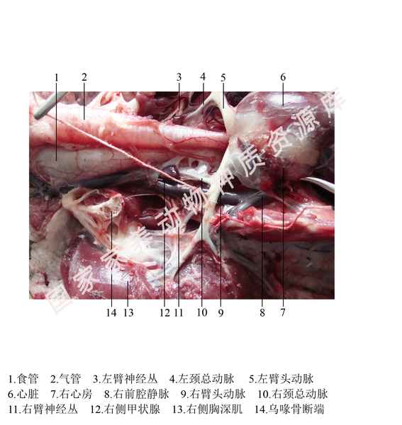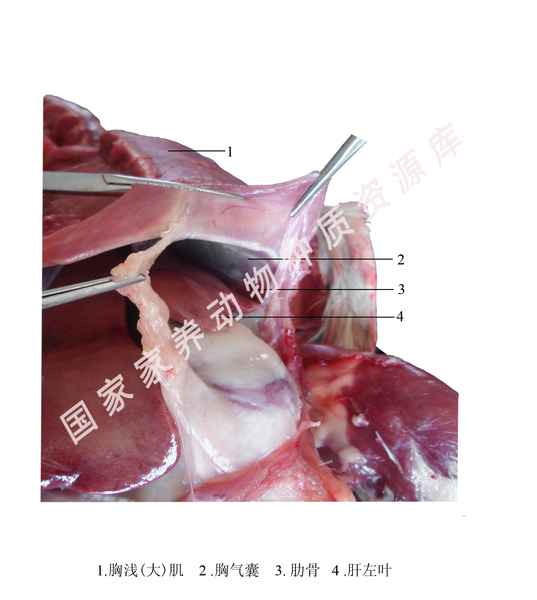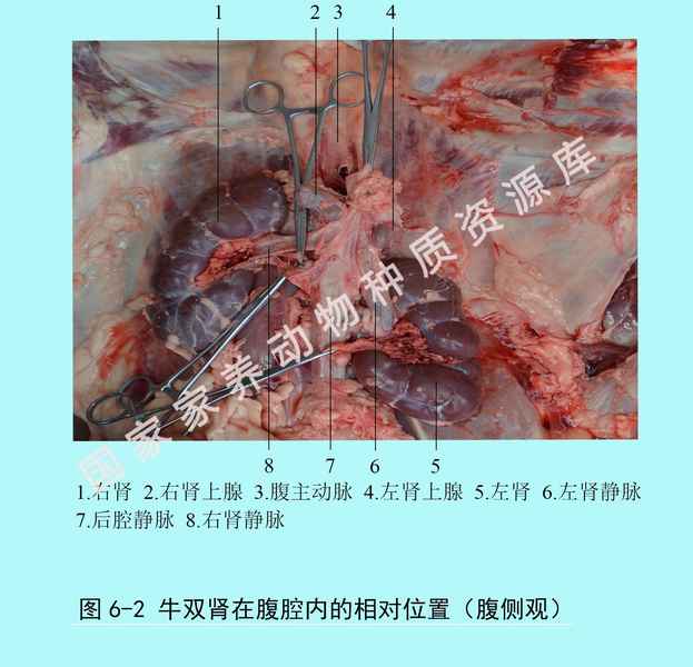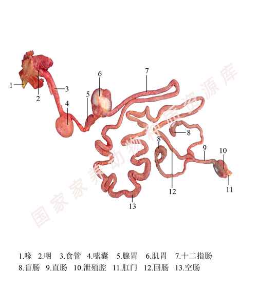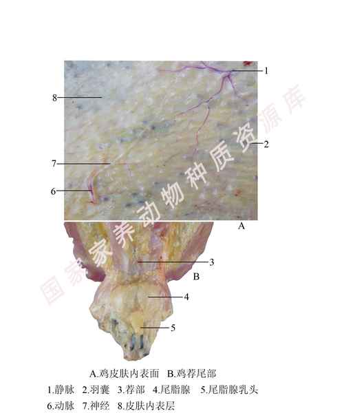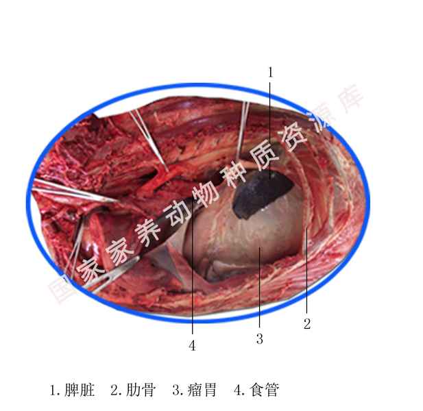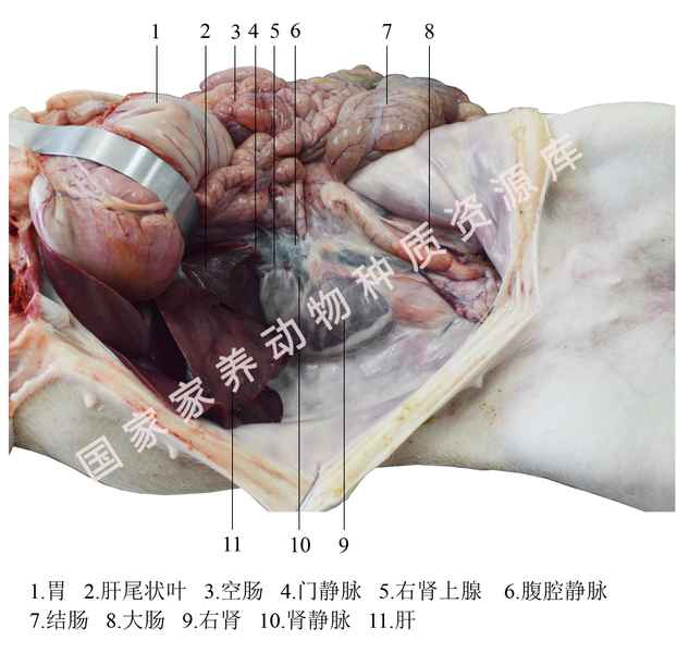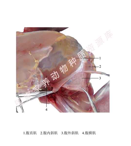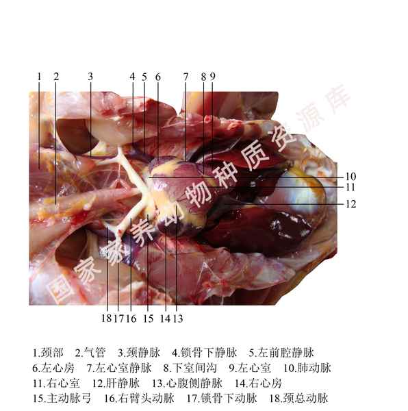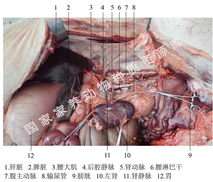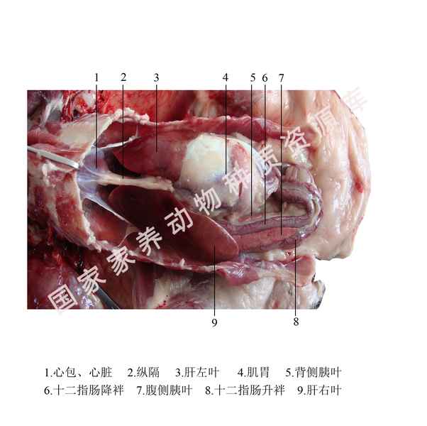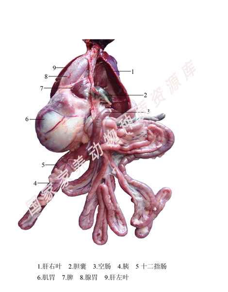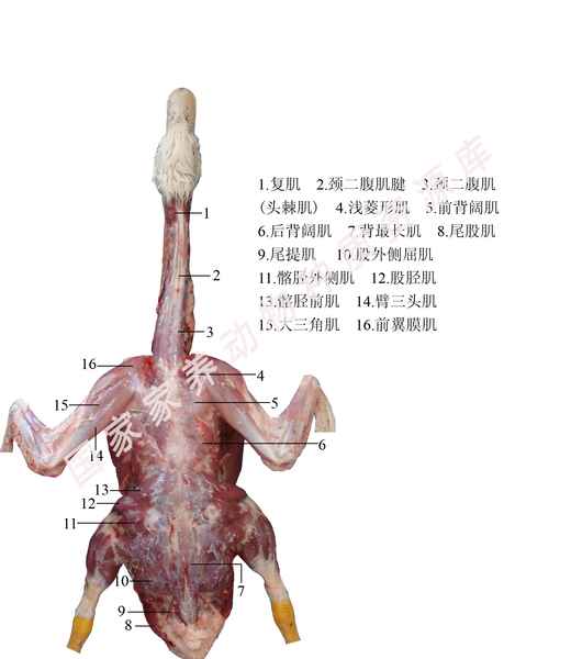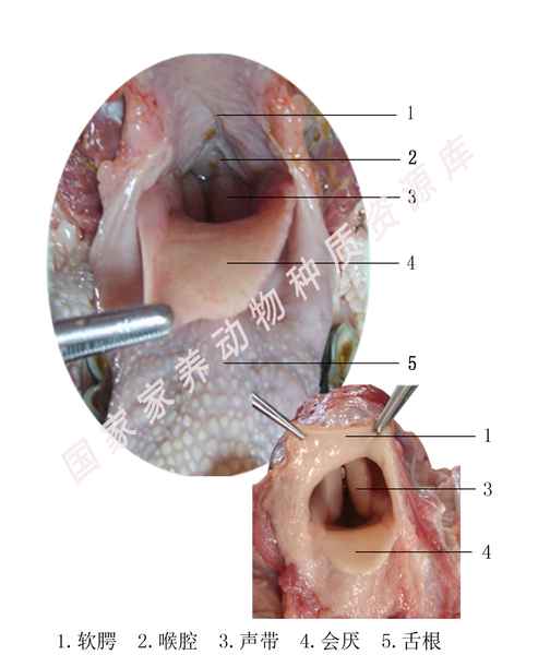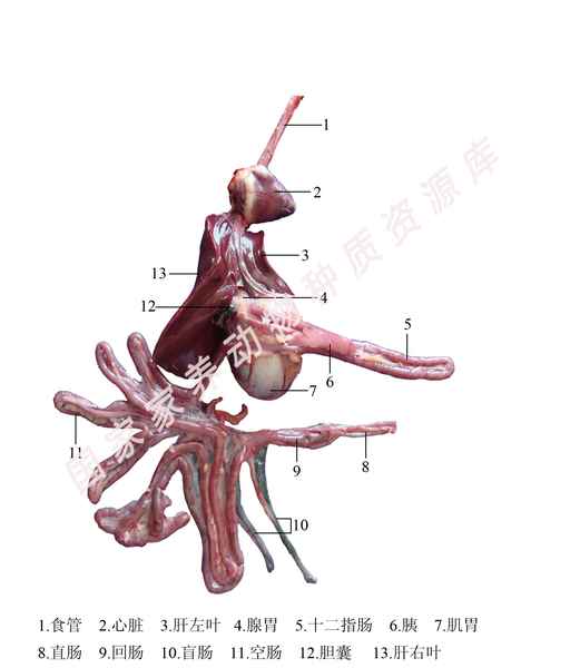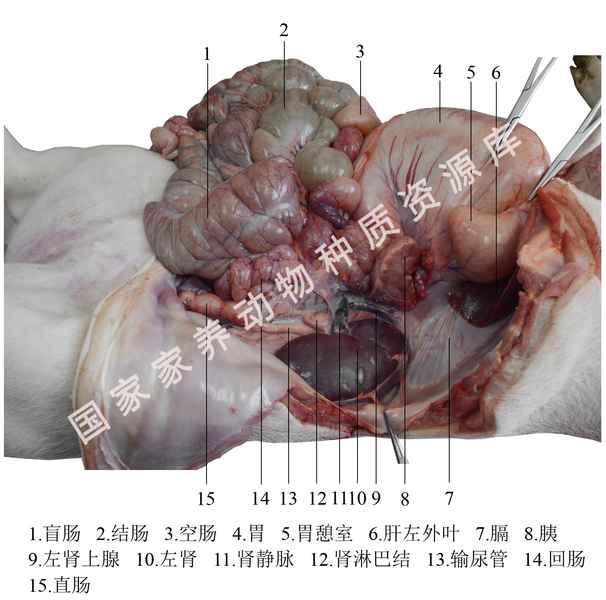 1.公鹅睾丸在腹腔内的位置(育成鹅)