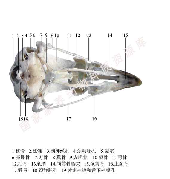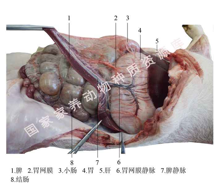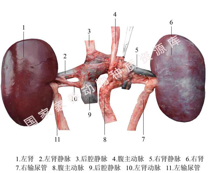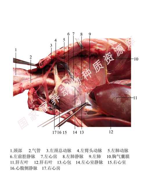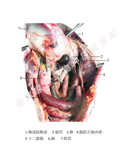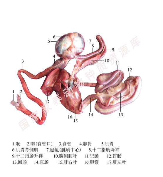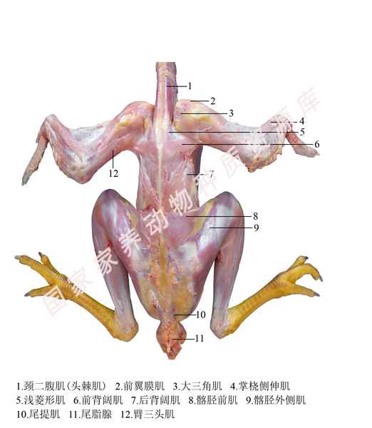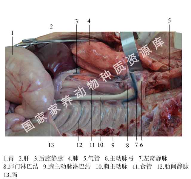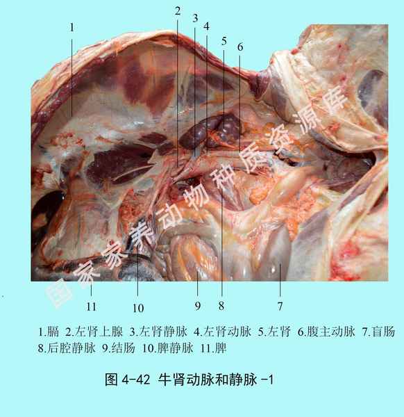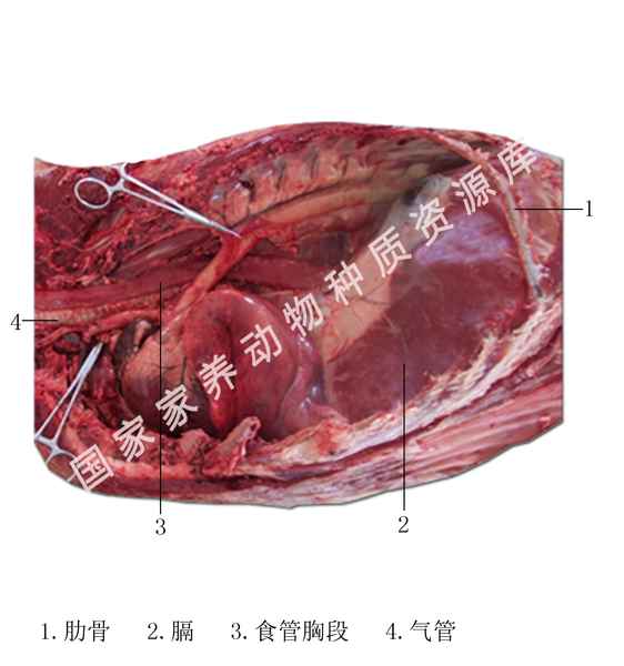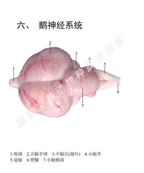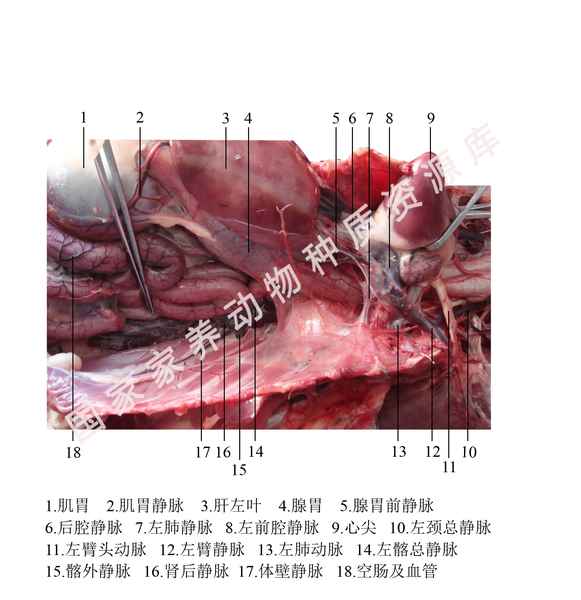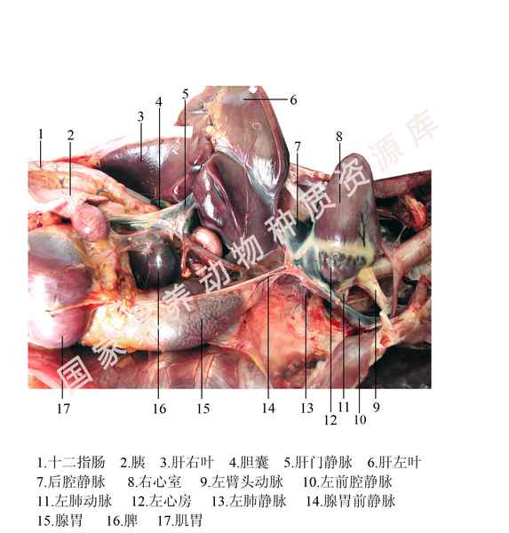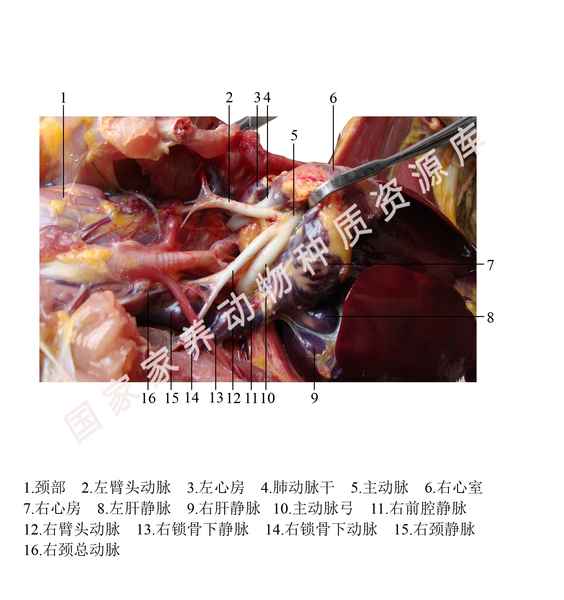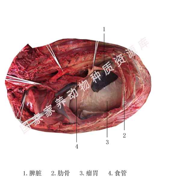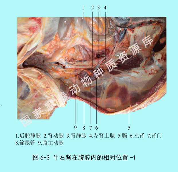 1.公鹅睾丸在腹腔内的位置(育成鹅)