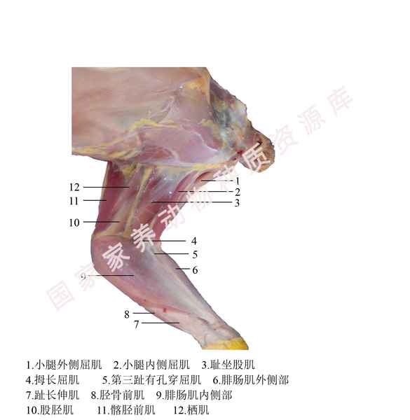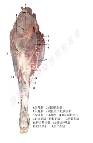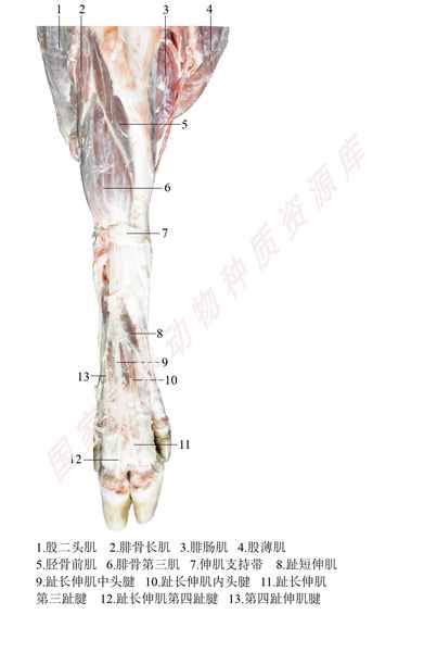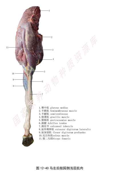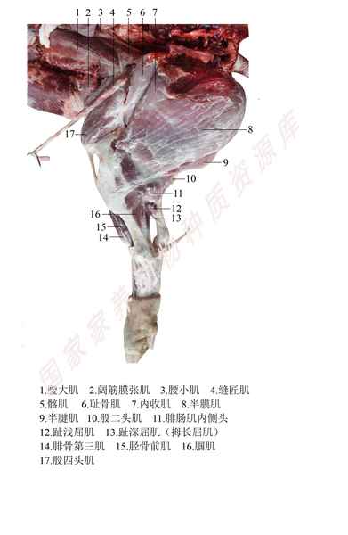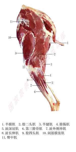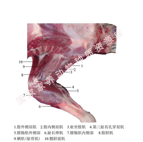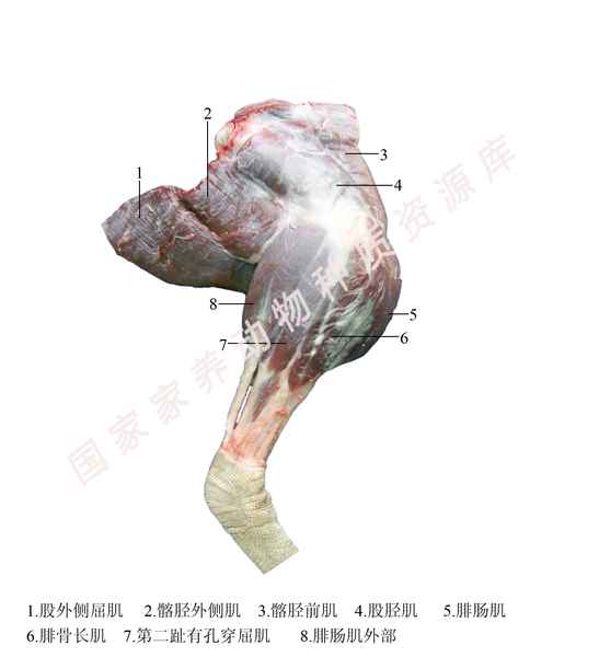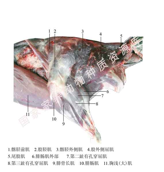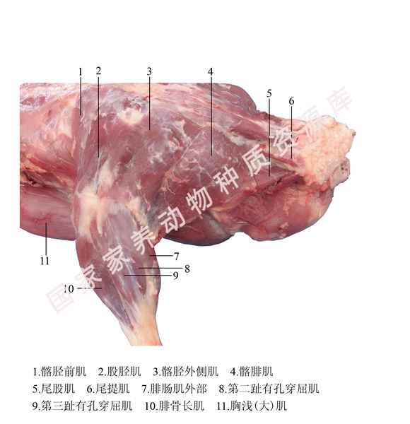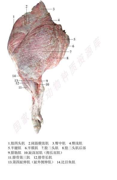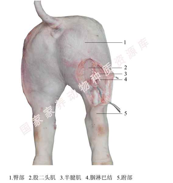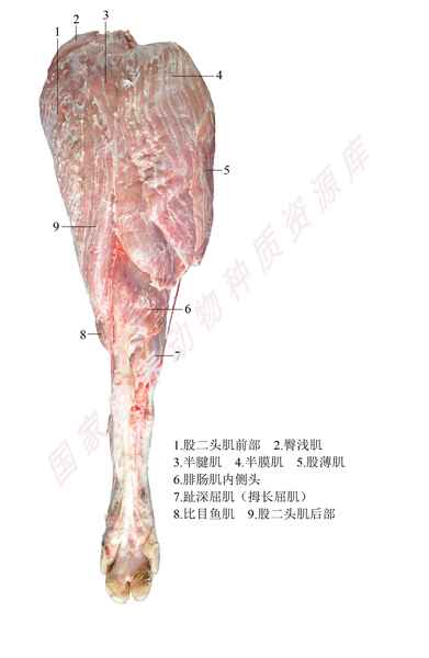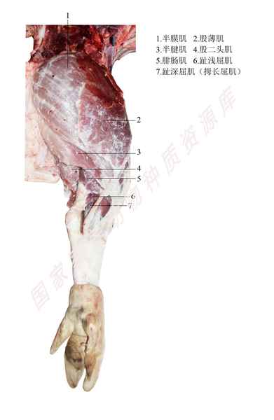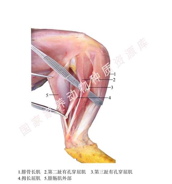 猪后肢小腿和后脚部肌腱(跖侧面)