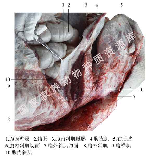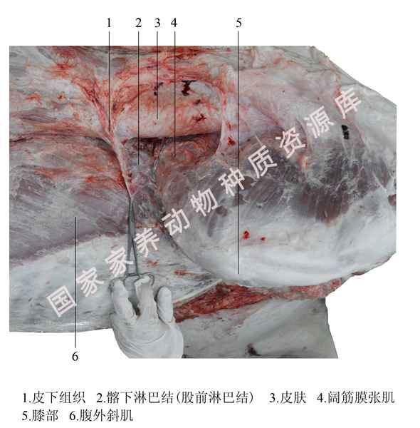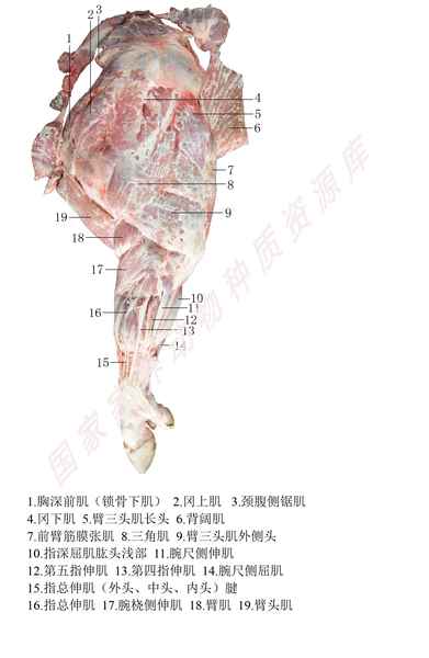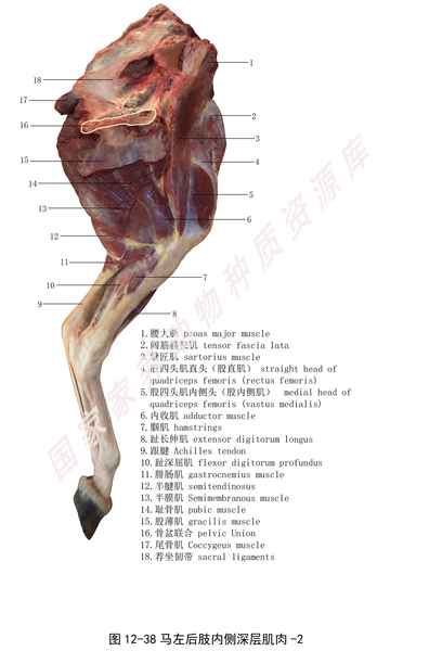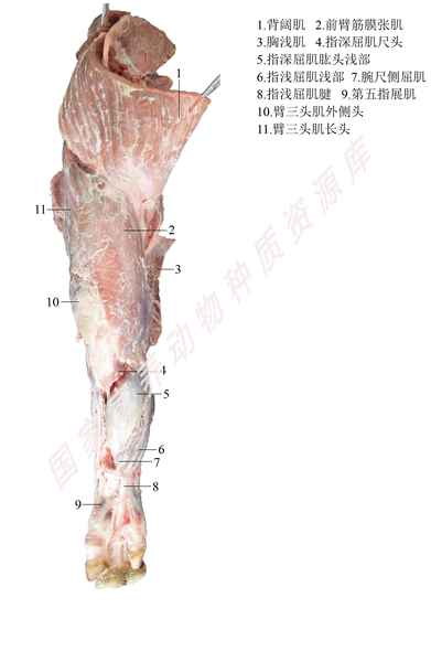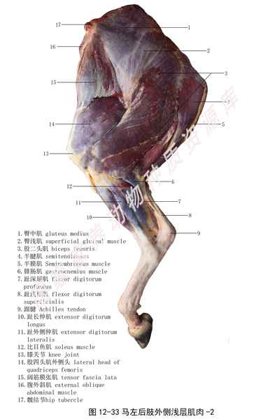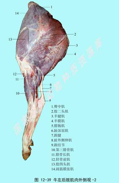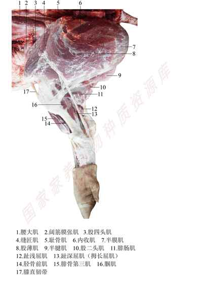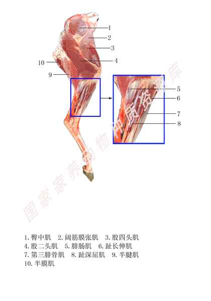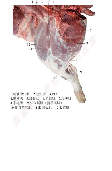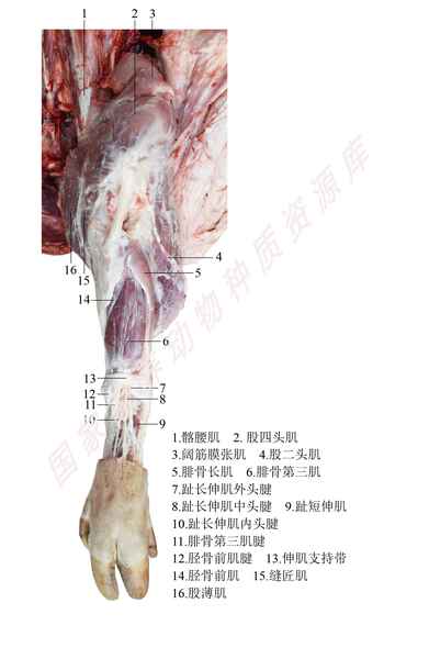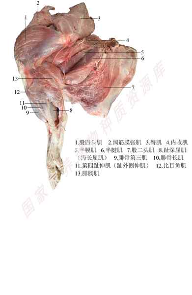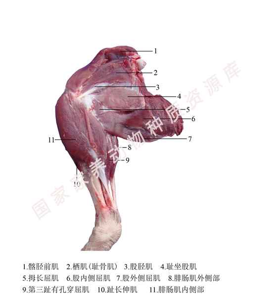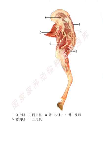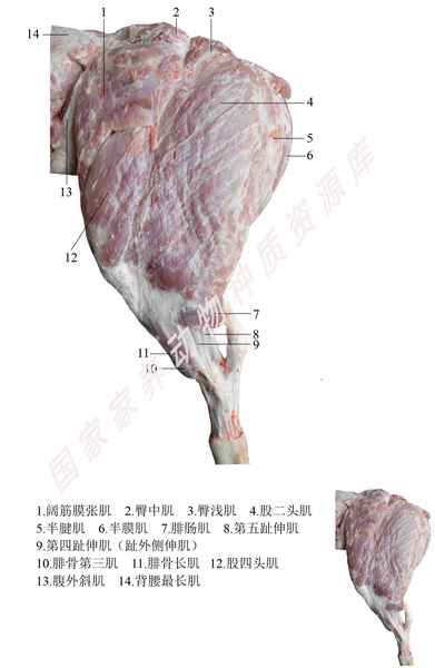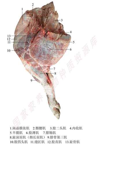 猪后肢小腿和后脚部肌腱(跖侧面)