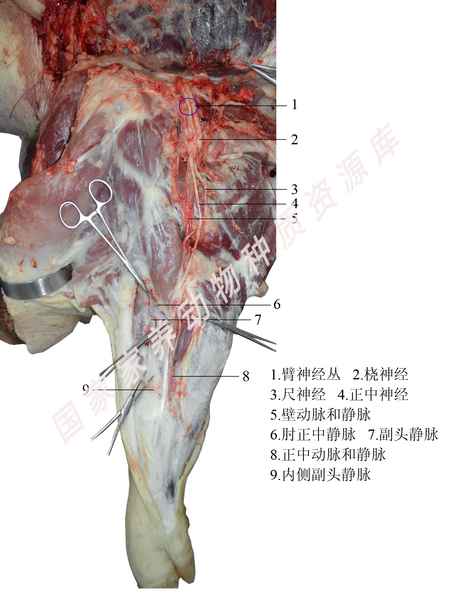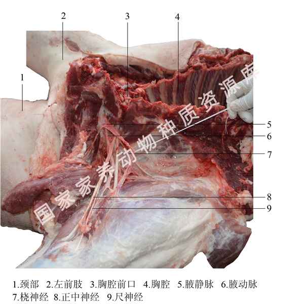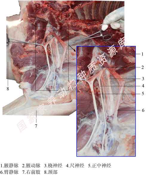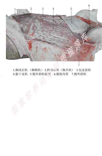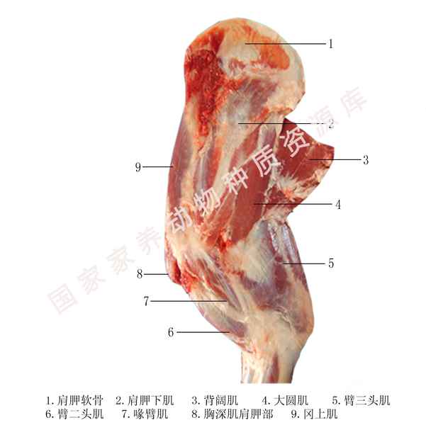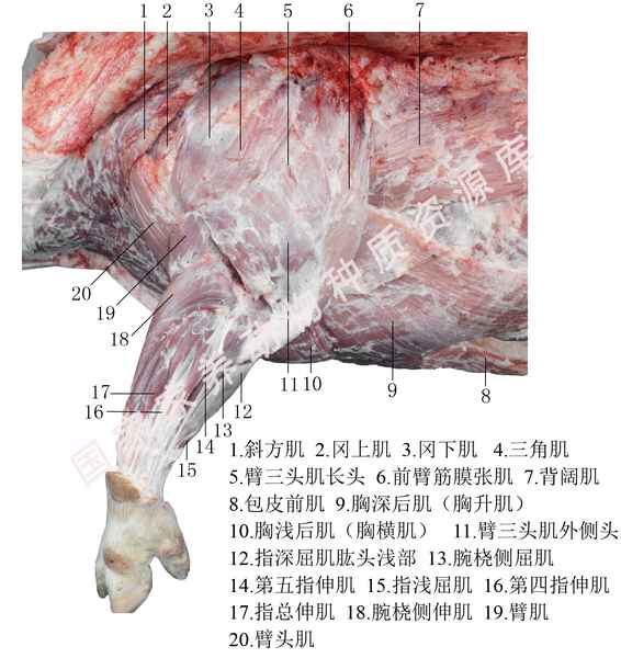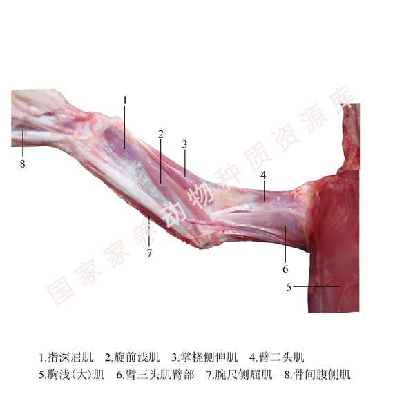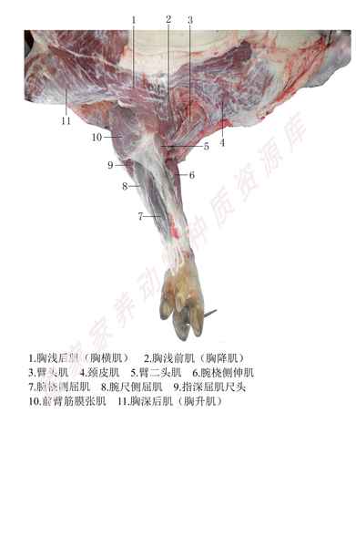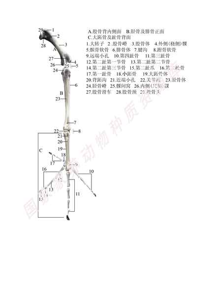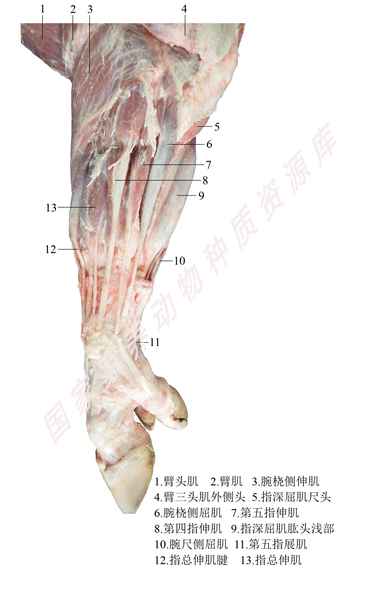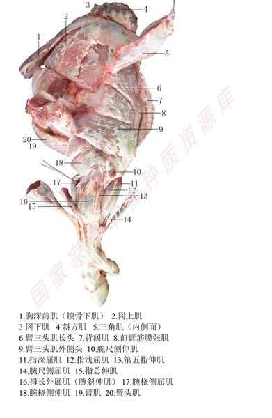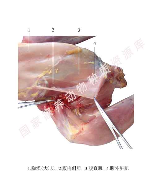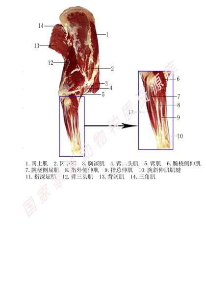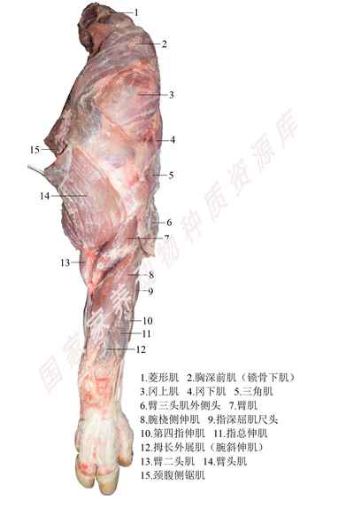 猪后肢小腿和后脚部肌腱(跖侧面)