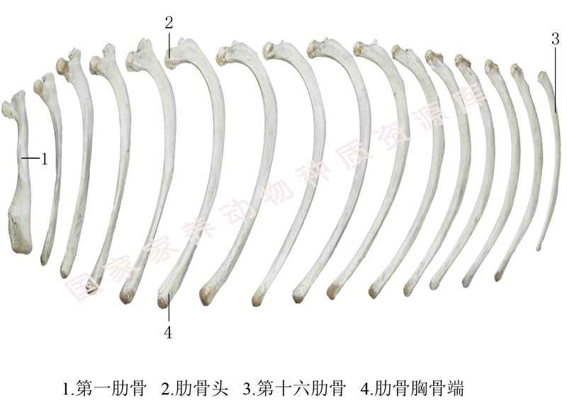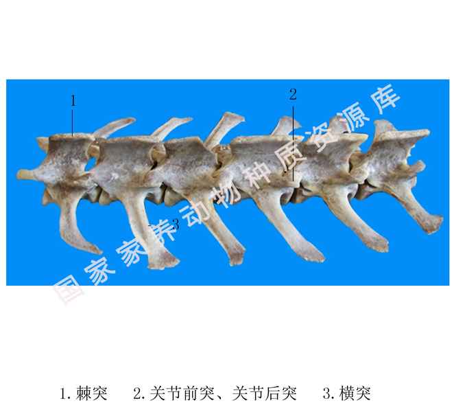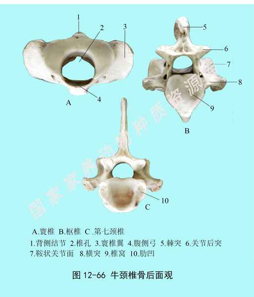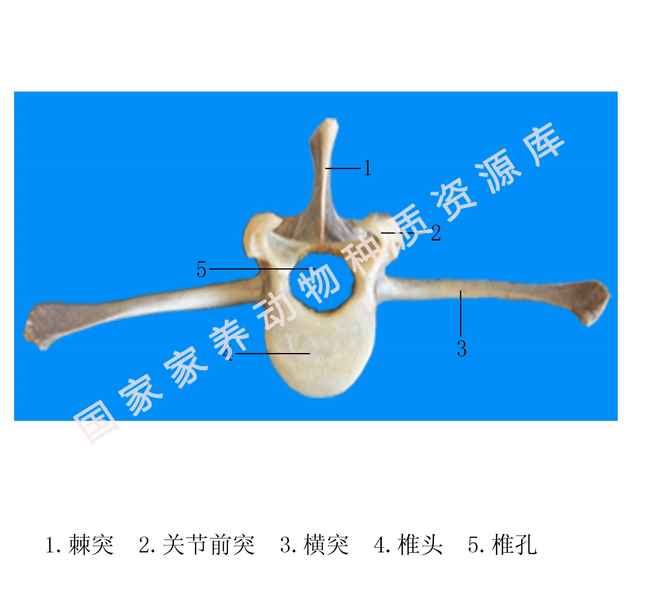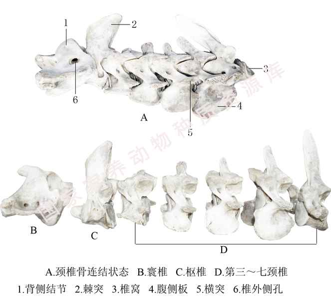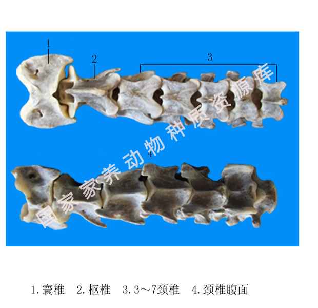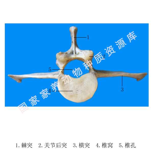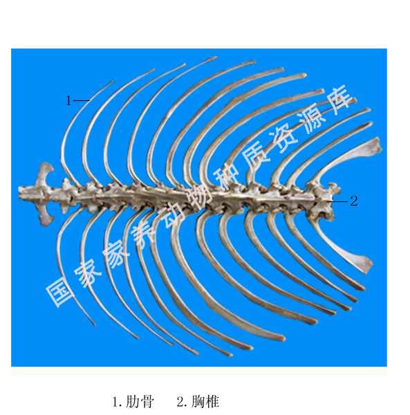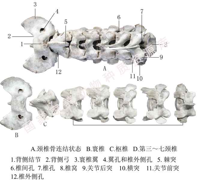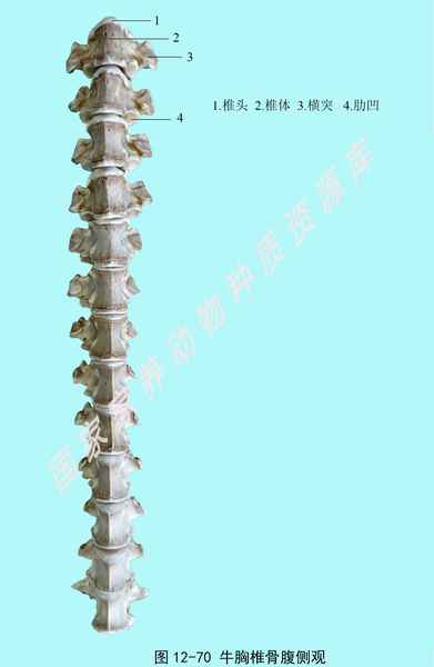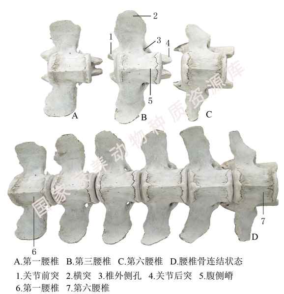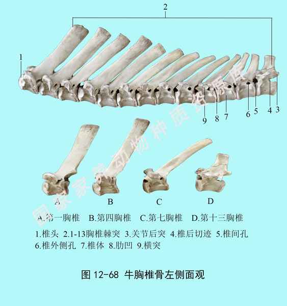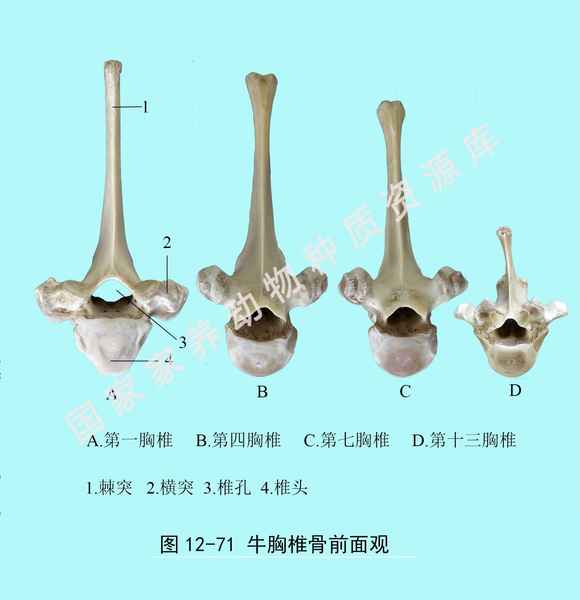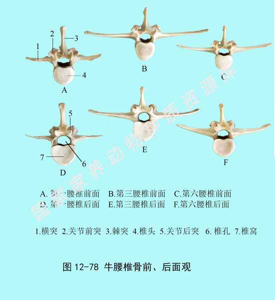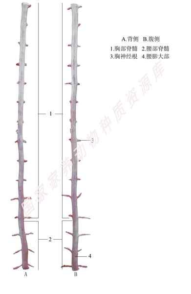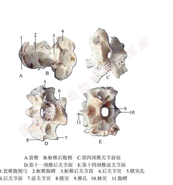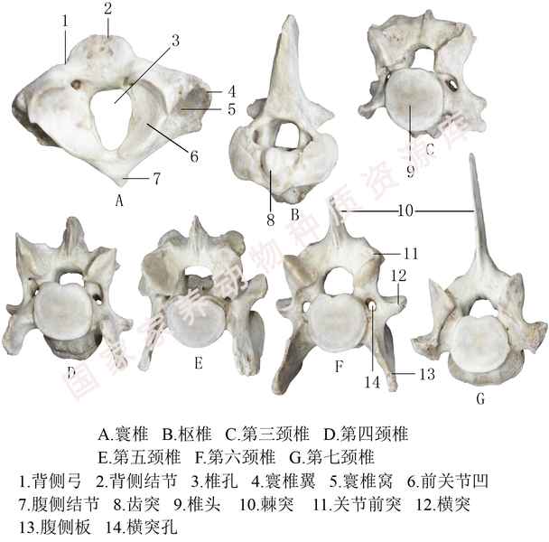 公猪第1、3、7、12、16胸椎骨前、后面观
