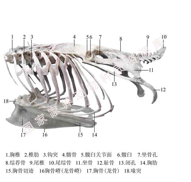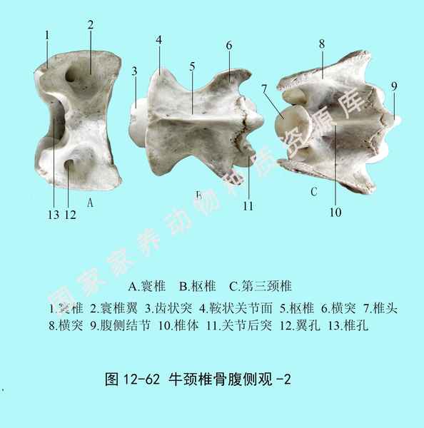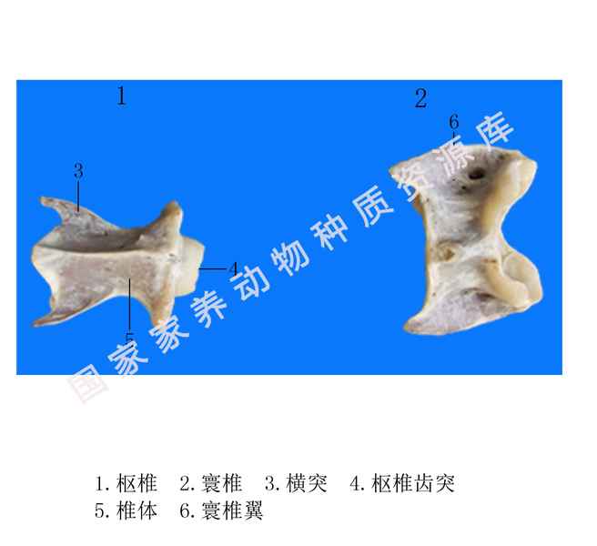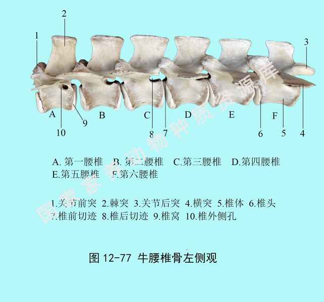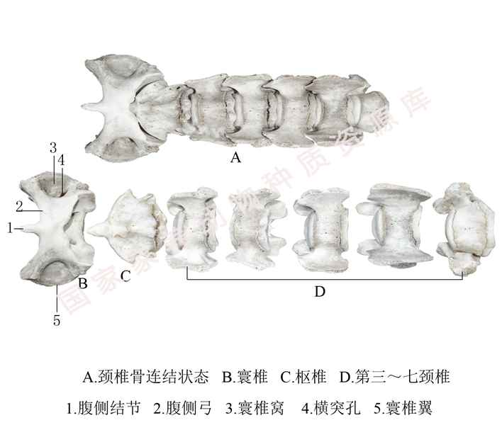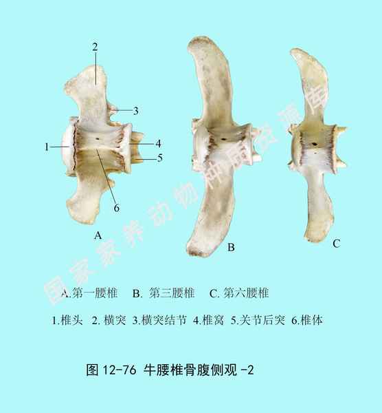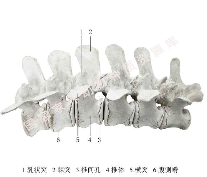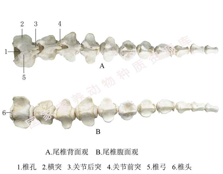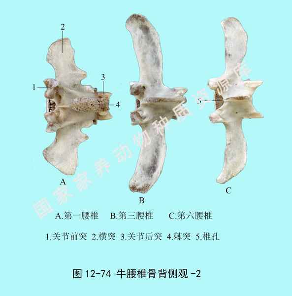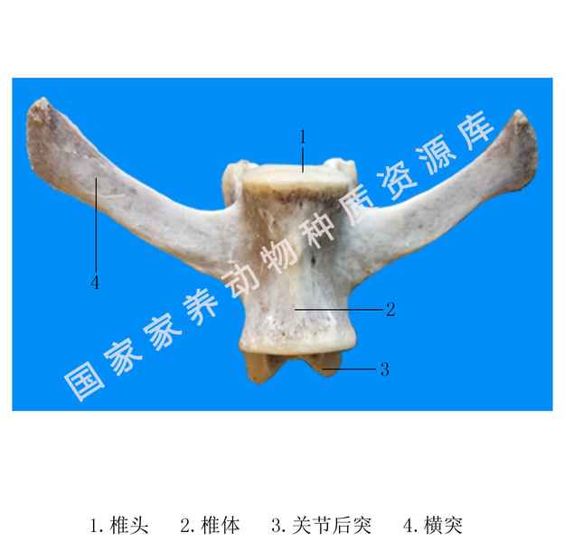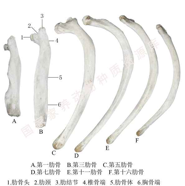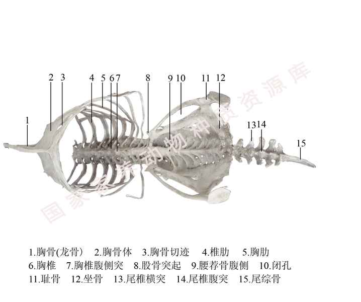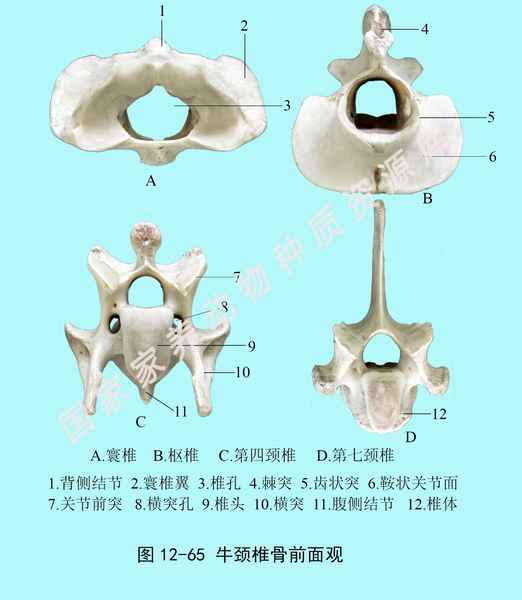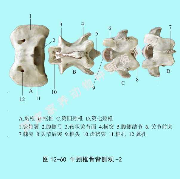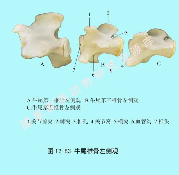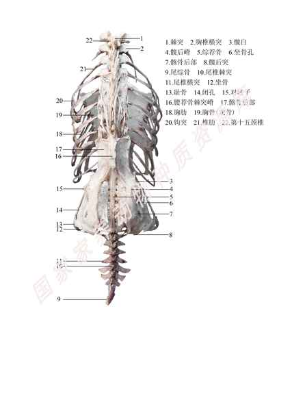 公猪第1、3、7、12、16胸椎骨前、后面观