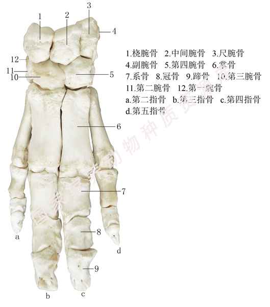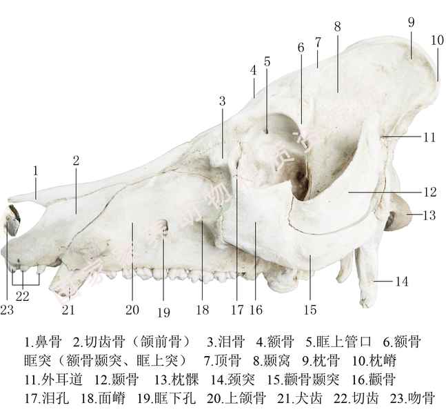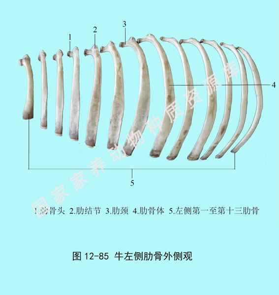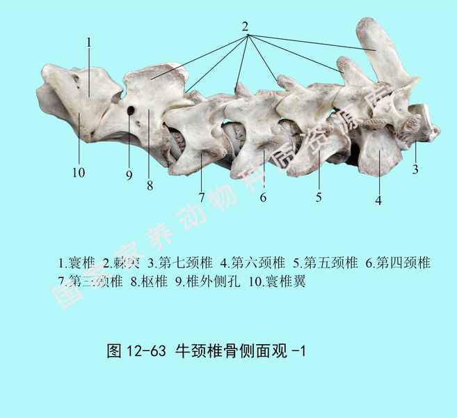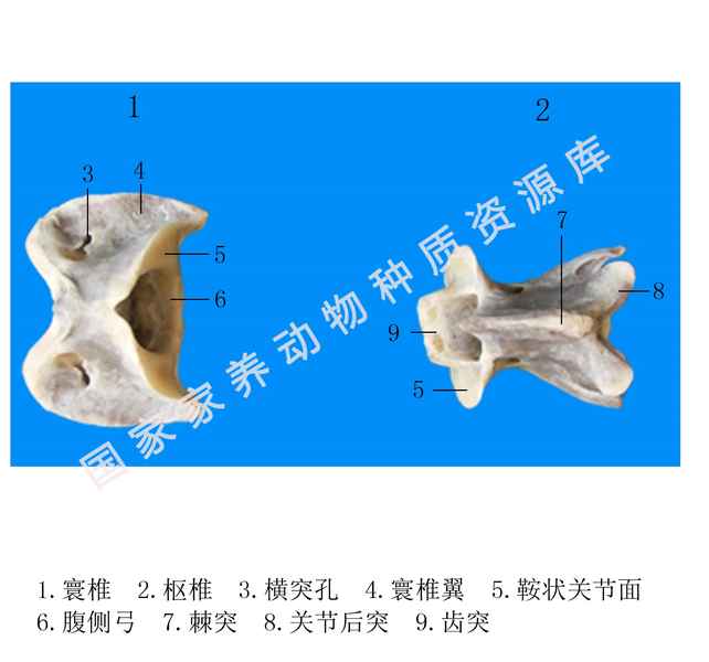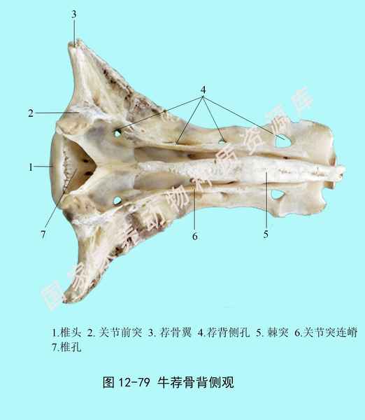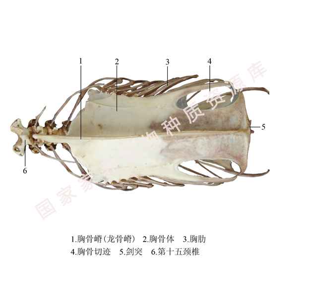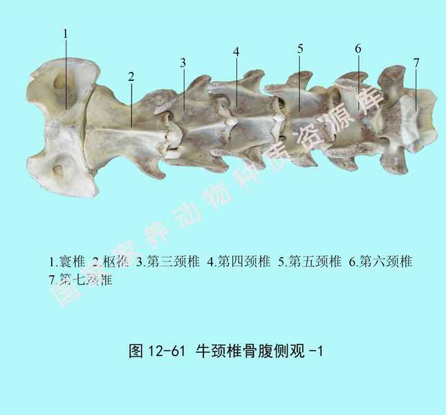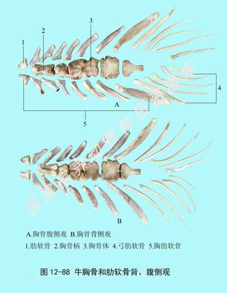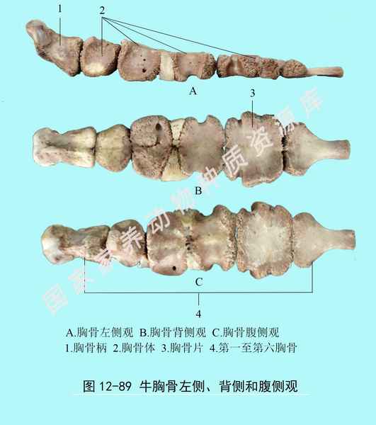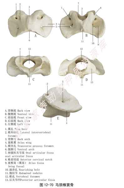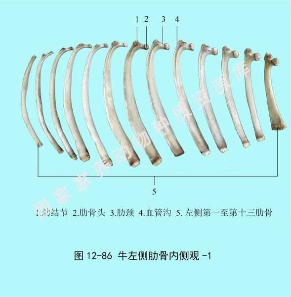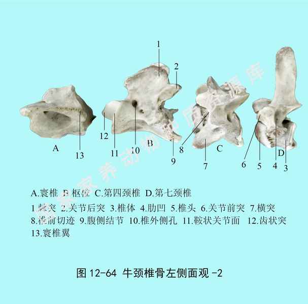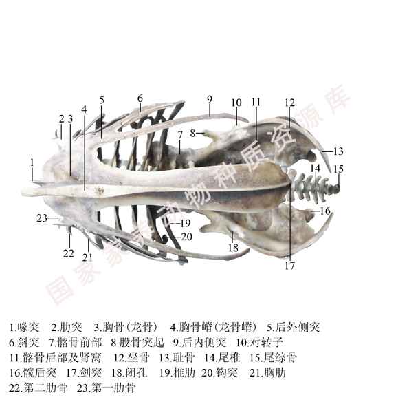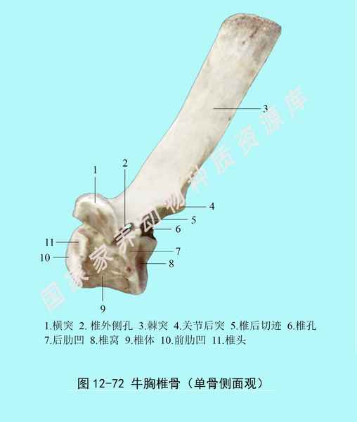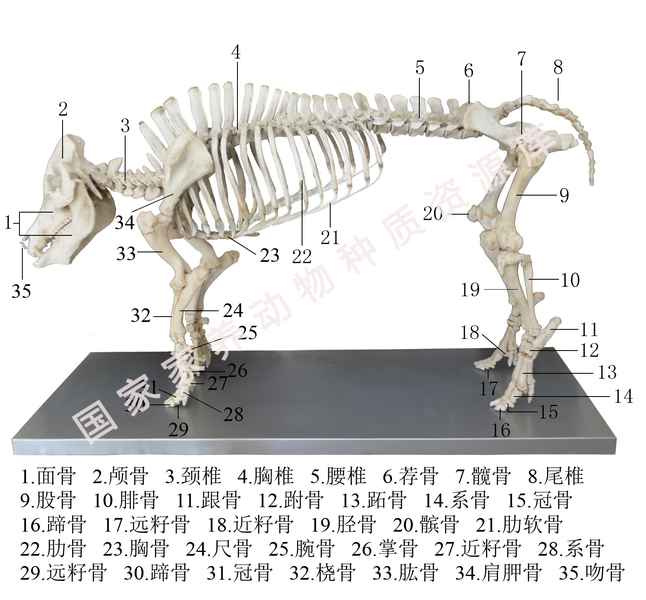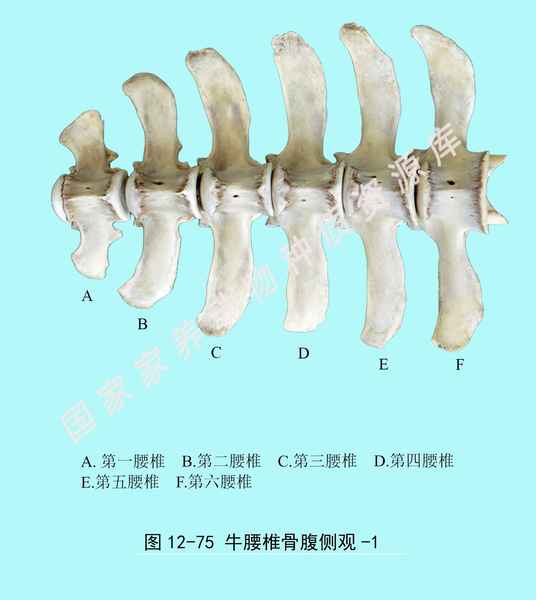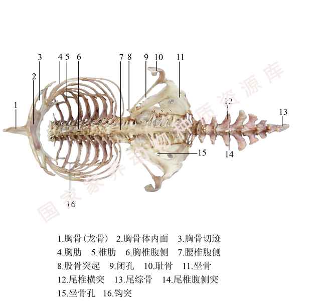 公猪第1、3、7、12、16胸椎骨前、后面观